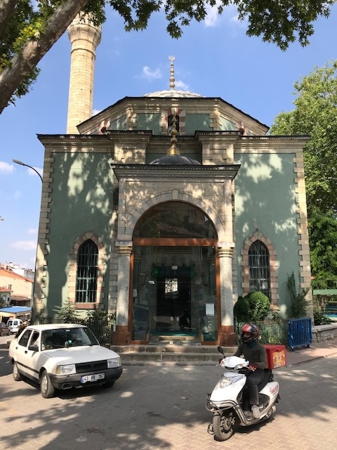 タイルの街キュタヒヤに行って来ました。この街にあるチニリジャーミーと言う青いタイルで外観を覆われたモスクを見に行く途中で見つけたモスクです。チニリジャーミーは丘の上にあり、街中から歩いて行くと大変でした。途中で見つけたこのイエシルモスクはトルコ語で緑のモスクですが、薄い黄緑色のタイルで覆われていてとても綺麗でした。チニリジャーミーはもっと濃い緑色です。