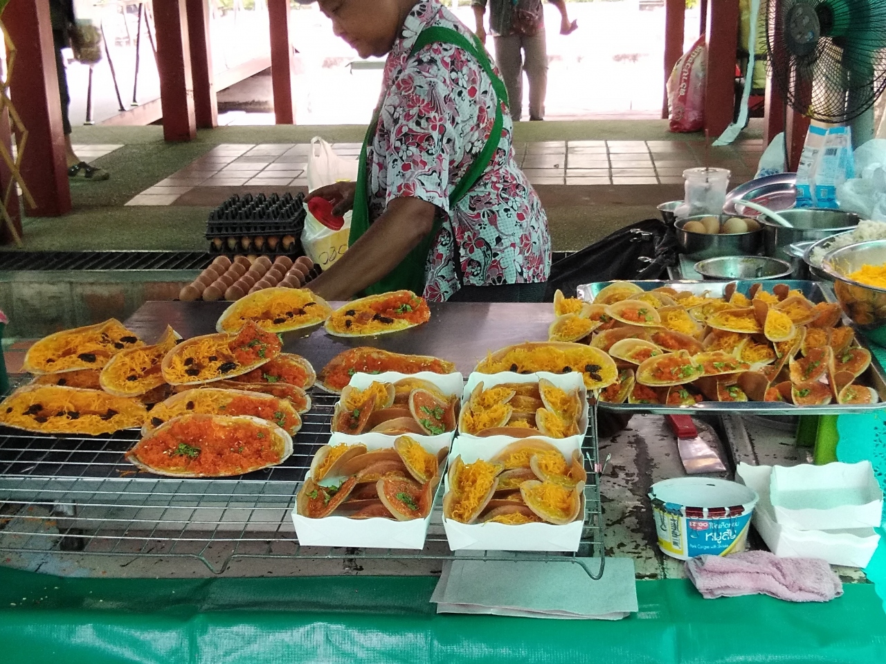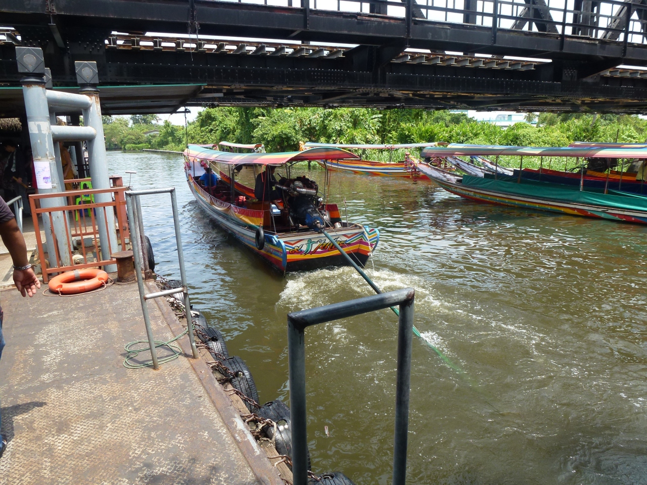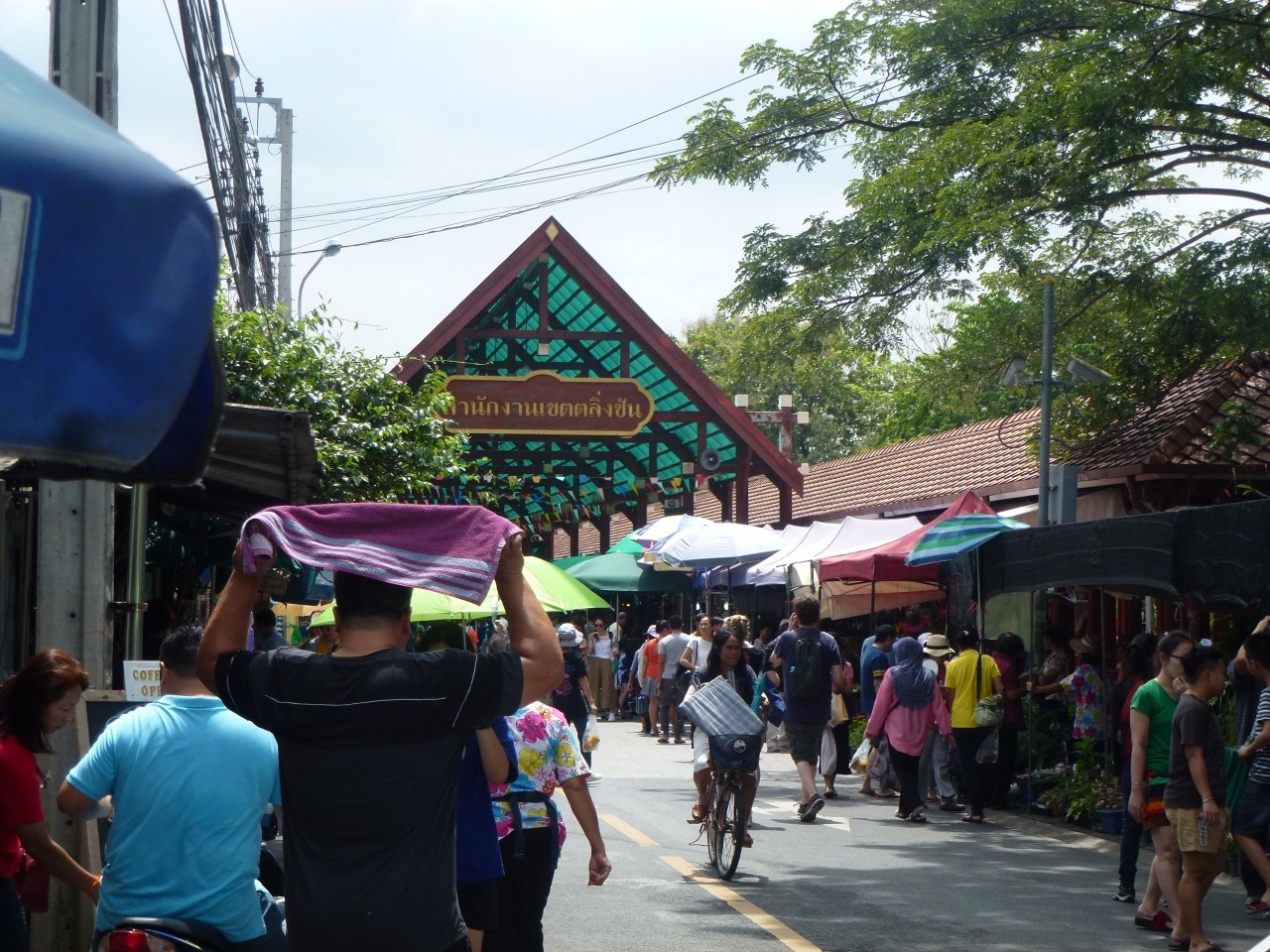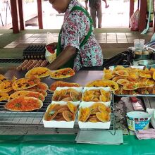 タリンチャン水上マーケットへは路線バスを利用して行きました。BTSチットロム駅近くのセントラルワールド前から79番のエアコンバスを利用します。 水上マーケットは、バンコクのタリンチャン市内を流れるチャックプラ運河沿いです。マーケット敷地内には、運河を催した小さめのエリアに数台の屋台船が停船していて、その隣に水上のレストランがあります。注文を受けて屋台船で料理していました。水上レストランの奥にあるボート乗り場より、水路を周るボートツアーがあり、今もなお水路沿いで生活する人々の家屋を拝見することができ、とても楽しかったです。