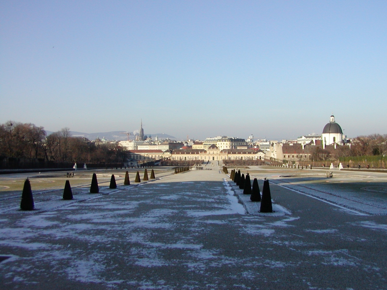 ハプスブルグ家の夏の宮殿として建てられたそうで、17世紀後半にパリのベルサイユ宮殿に匹敵するようにとレオポルド1世の命により建設が始まり、その後、マリア・テレジアが大規模な改築を行ったという大きな宮殿で、外枠は黄色タイルで前庭、後庭と広い庭園でした。