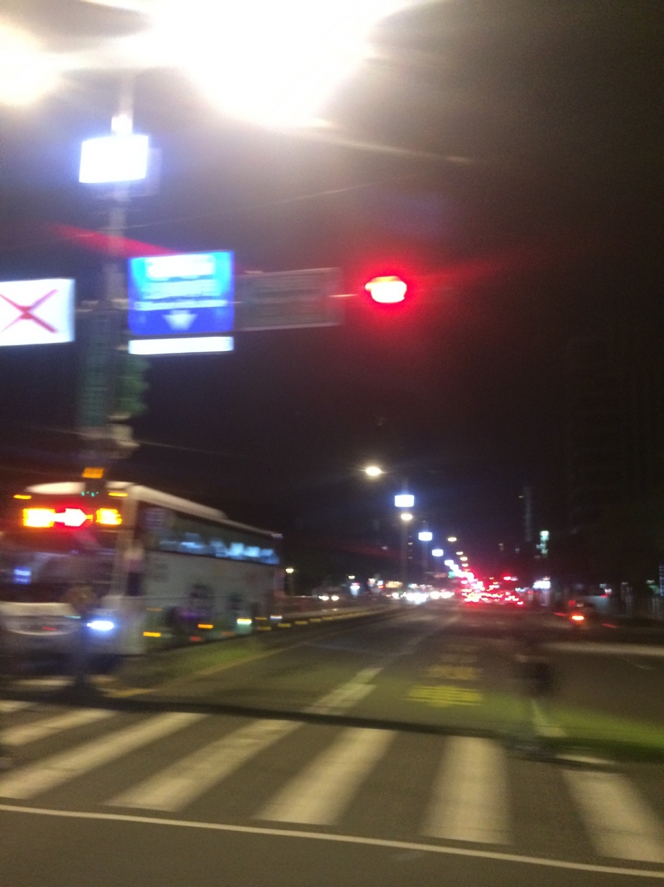 南京東路は東西に走っている通りで、路線バスがとても多いです。途中に大きな公園があり、夕涼みにはぴったりでした。バス停のあるところは、バスレーンになっているところなので横断歩道の真ん中まで渡る必要がありました。