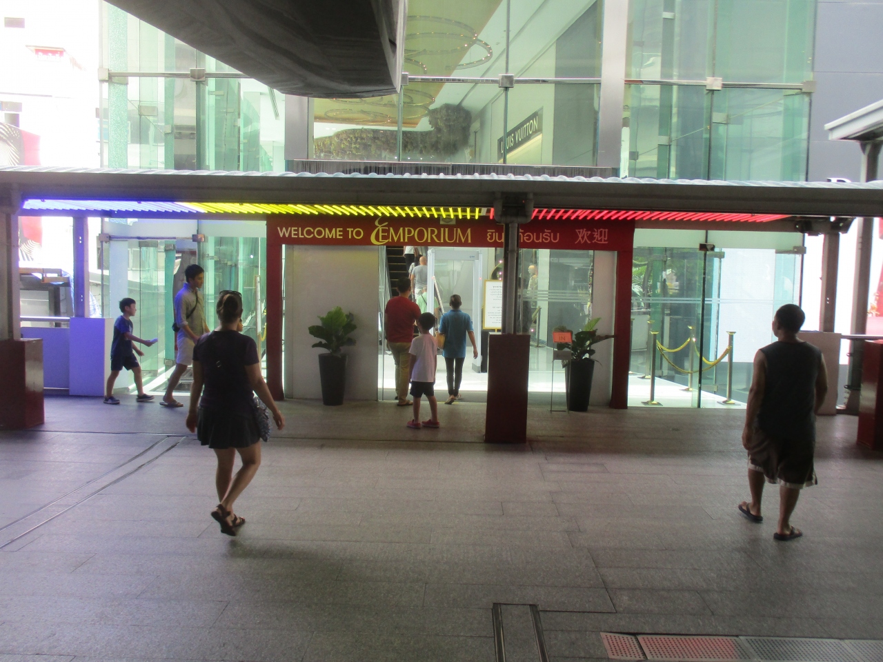 6月のバンコクは雨季のまっただかでした。朝は晴れていましたが、午後になると急に雲行きが怪しくなり、突然の雷に豪雨が降ってきました。雨がおさまるまで、エンポリアムで雨宿りを兼ねてウィンドウショッピングを楽しみました。ブランド物には興味ないですが、1階から5階に入っているショップの新着商品をチェックしたりして過ごしました。