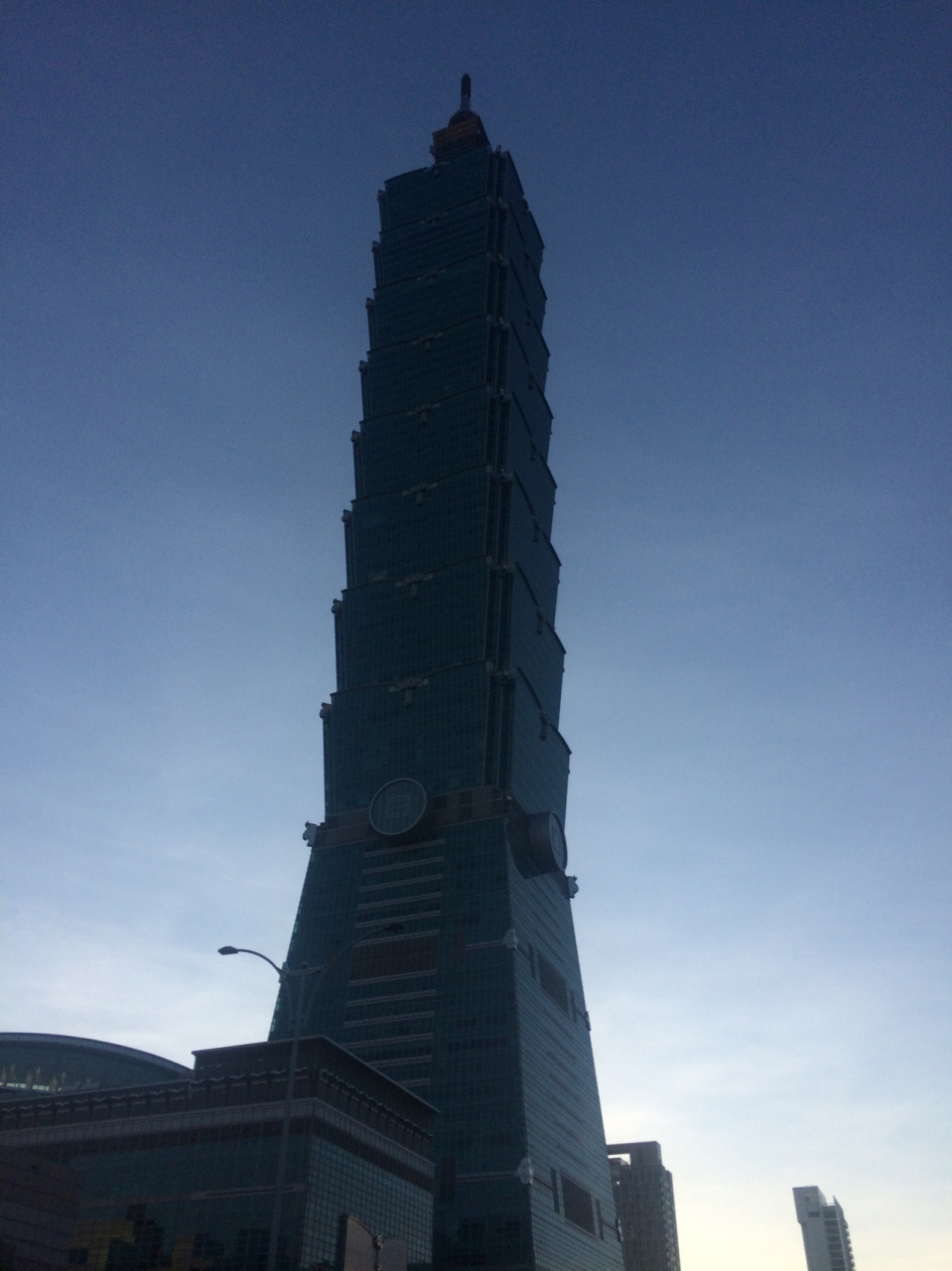 リッチなお店がある大通りです。ブリーズセンターなどのデパートが立ち並んでいてMRTの駅もありました。101は堂々とそびえ立っていて、同じ台北市でも西側とはだいぶ違うなと思いました。夜は、ライトアップで明るかったです
