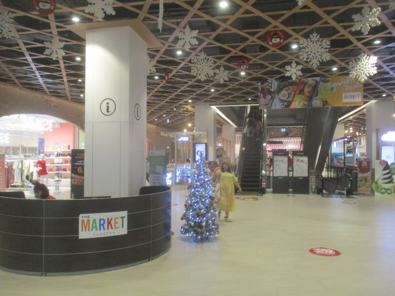 約1カ月ぶりにザ マーケット バンコクに訪問しました。12月になり店内外はクリスマスのディスプレイが施されていました。エントランスにはクリスマスツリーが飾られており、チットロム駅周辺のショッピングセンターは、すっかりクリスマスのモードになりました。