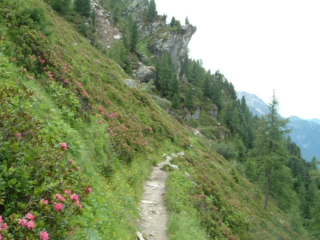 トレッキングルートの右側にはモン・ブラン山塊が立ちはだかり、左側は遥か眼下にシャモニーを見下ろす谷となっていました。