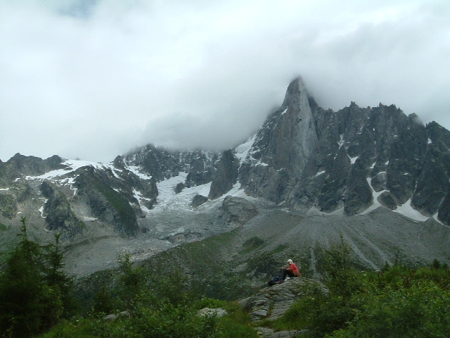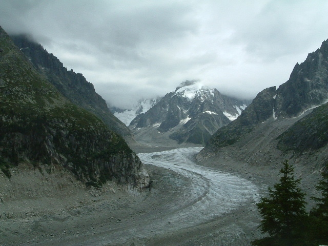 ここからは、雄大なメール・ド・グラスを見渡すことが出来、深い感動を覚えました。また、氷河の両面には、天を突き刺す様にヴェルト針峰など4,000m級の急峻な山々が聳え、 壮大な眺めが展開していました。