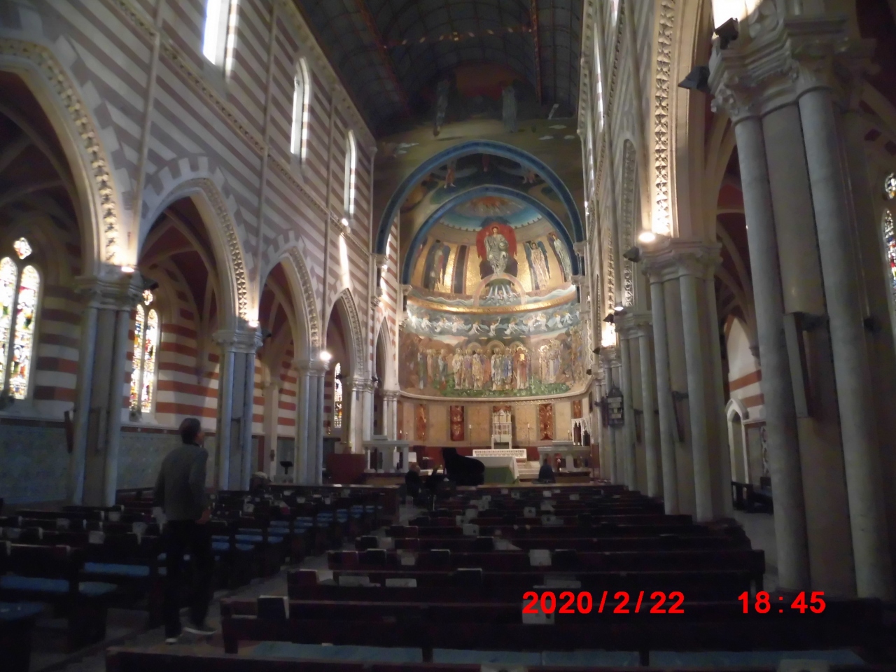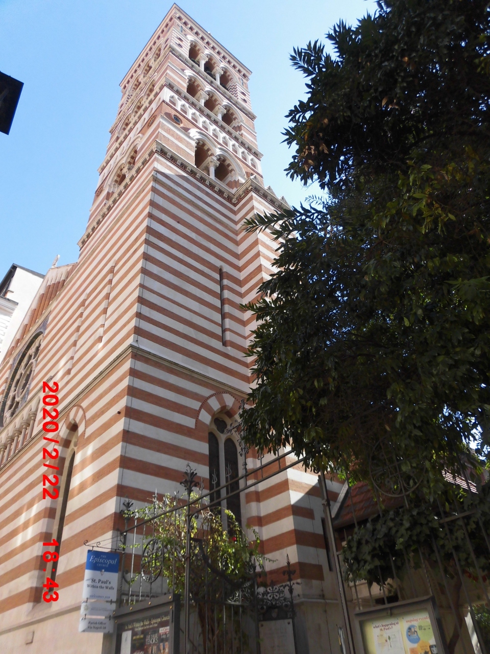 イタリアのローマ観光で立ち寄りました。オペラ座から西に3分程の所にあったレンガ色と白の縞模様が目立つ教会でした。グーグルの地図ではセント・ポールズ ウィズイン・ザ・ウォールズ教会と表示されていたので分かり難かったですが、壁の中のサンパオロ教会でやっとわかりました。鐘楼まで縞模様になっているのも面白かったです。何故、壁の中の教会なのかは分かりませんでした。