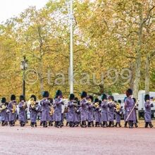 ホースガーズパレードから出発した騎馬衛兵やバッキンガム宮殿から来た軍楽隊がここを行進してました。