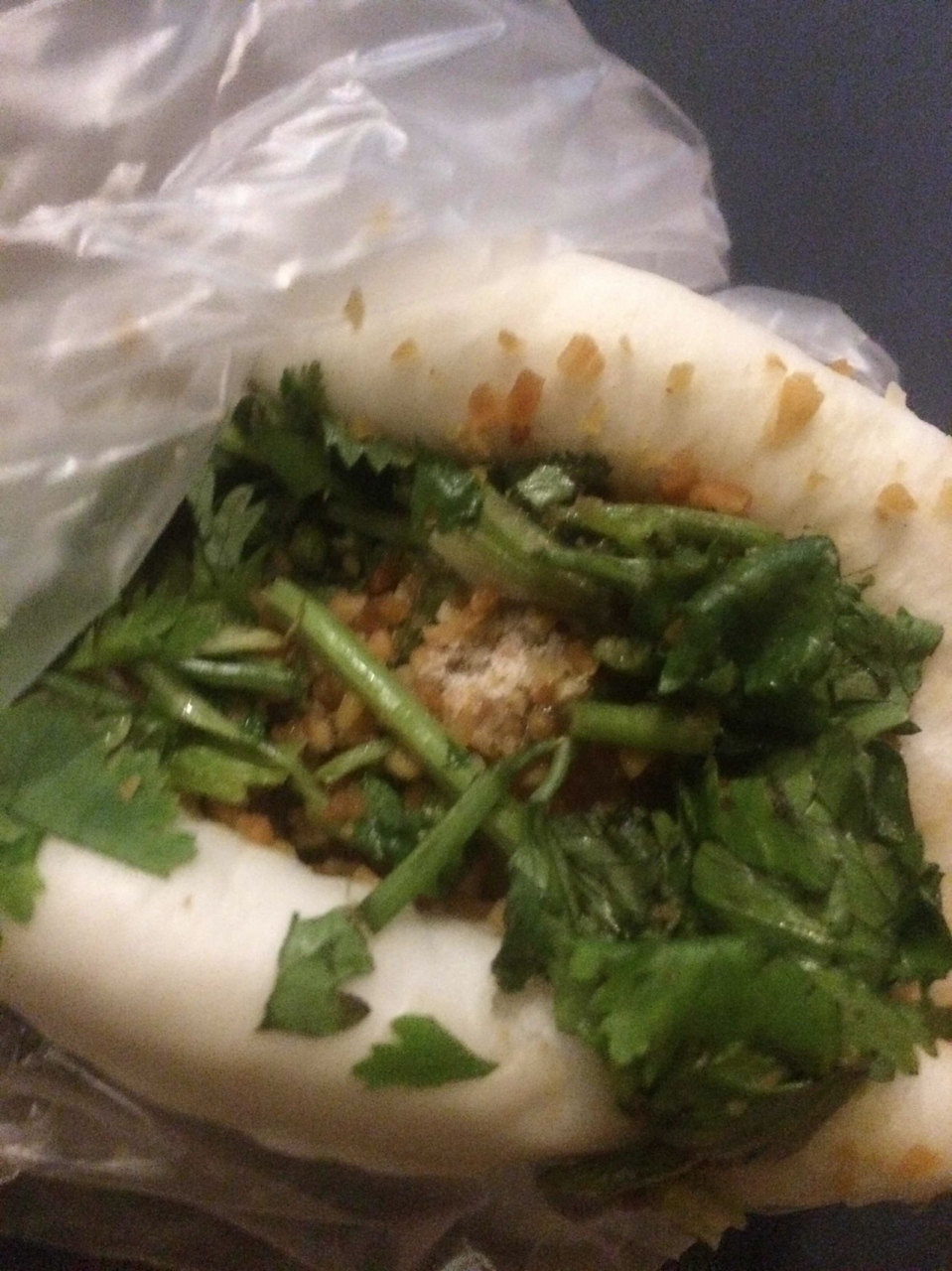 ガイドブックにのっている割包という名物のお店です。夜市のそばにあるお店です。古くからあるお店のようで、決して派手さはありませんが、素材感が大切にされていました。緑のパクチーを多めにとオーダーしてみました。