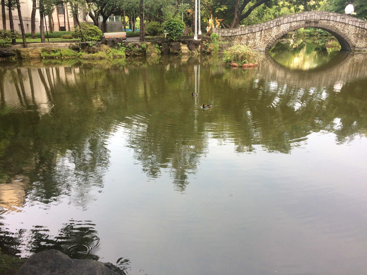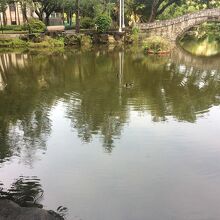 鯉魚池の周りの石は大きくて、苔が生えていました。風情があって、日本庭園にありそうな雰囲気でした。夫が、水面に映った国立台湾博物館の写真を撮っていました。鯉魚池の周りには、ベンチが結構ありました。雨はしのげません