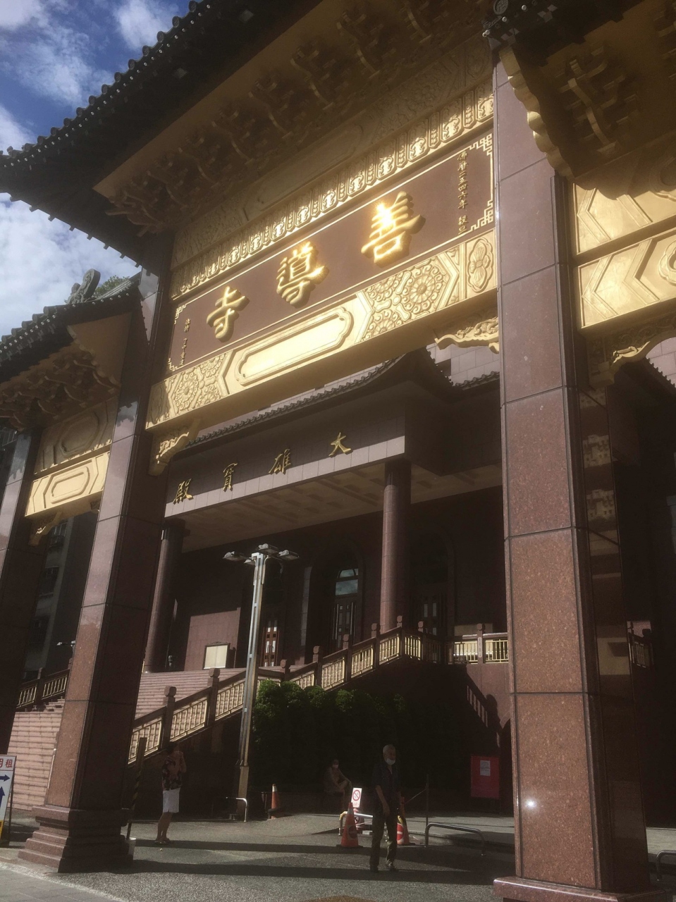 MRT善導寺駅の6番出口を出て、すぐのところに善導寺が見えます。門が金ぴかで3階建てくらいの高さで、車が入っていきますが、そんなに門の高さはいらないんじゃないかというくらい高いです。日本式に近い雰囲気でした