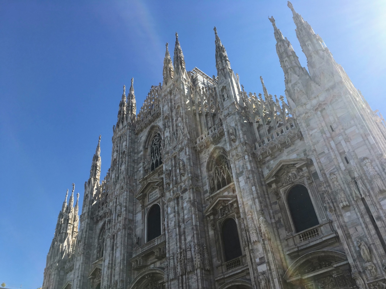 ミラノの中心地に白くて大きな大聖堂があって圧巻でした。