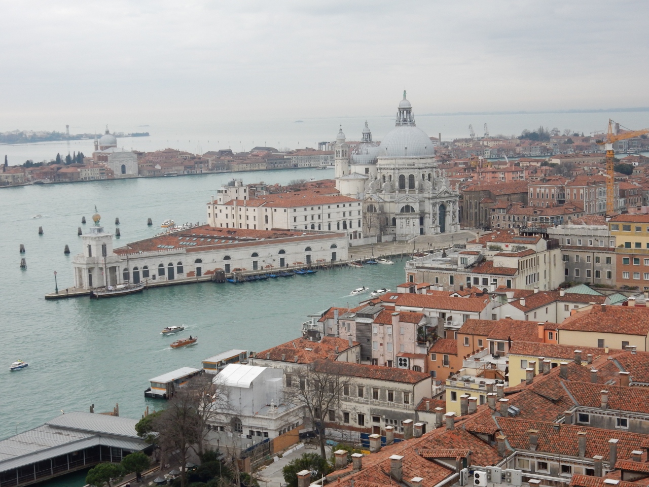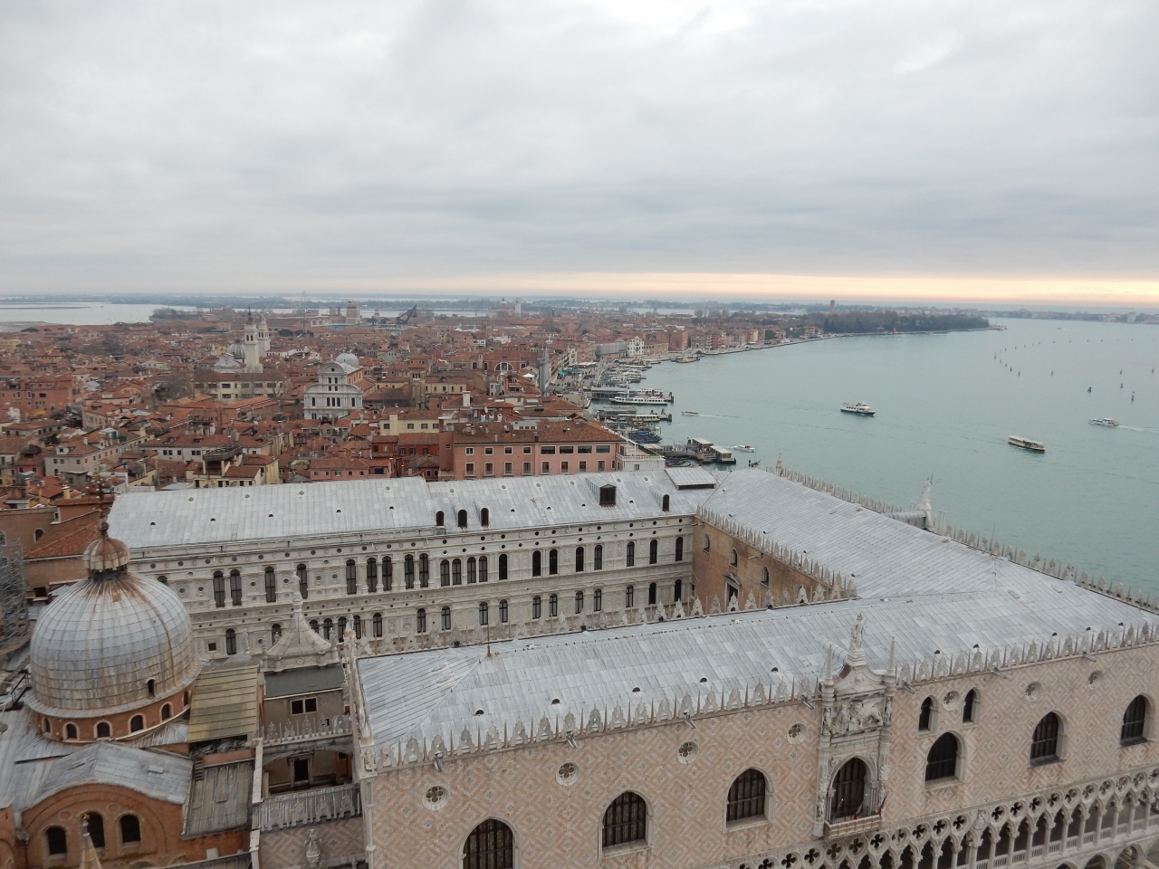 西・北・東に広がる赤い屋根のベネチアの街、南側を見ると運河の先に教会が見えるなど、美しい景色が堪能できます。