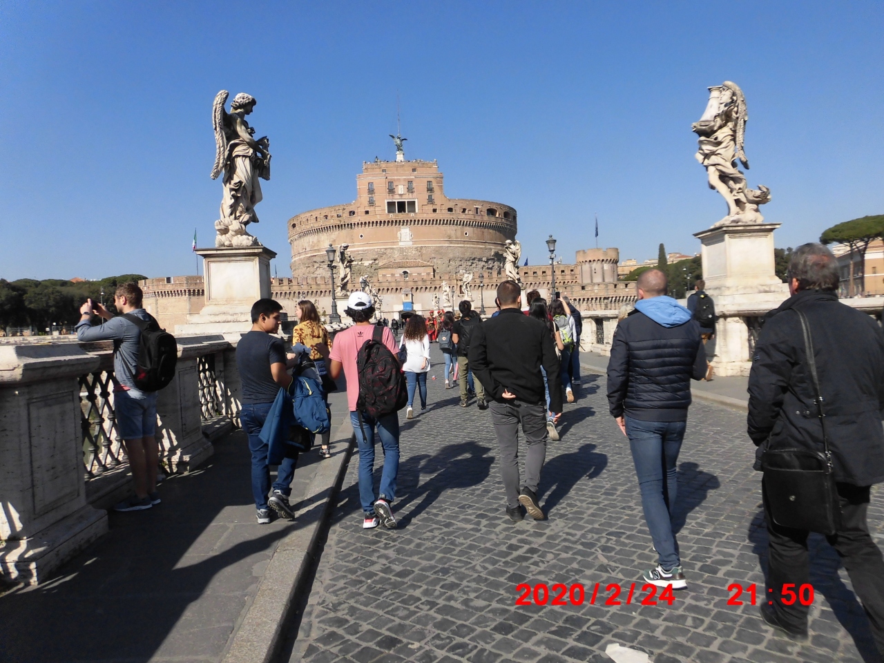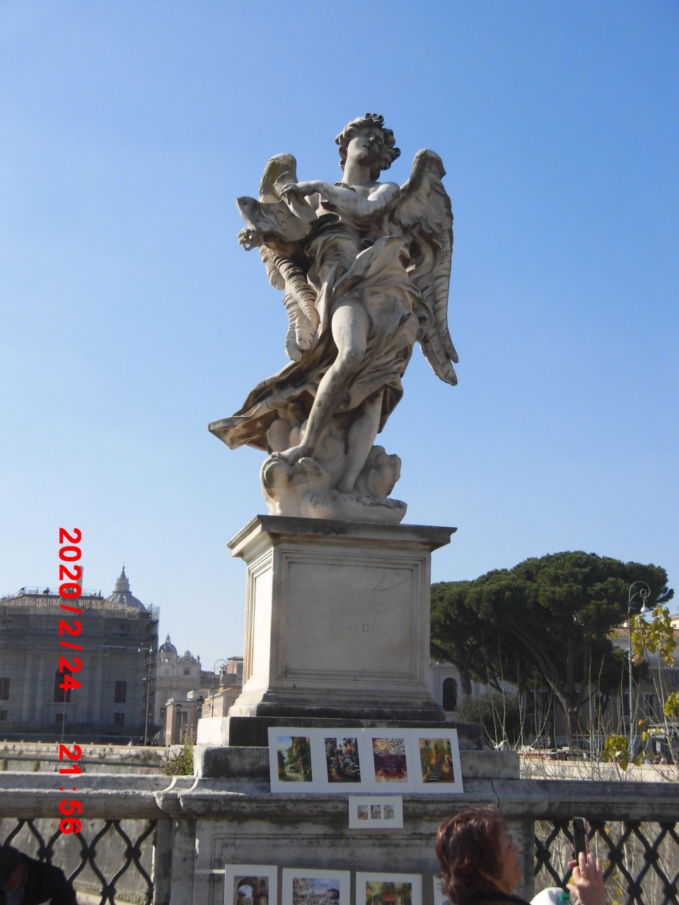 イタリアのローマ観光で立ち寄りました。サンタンジェロ橋の南端からサンタンジェロ城に向かって歩く時に利用しました。橋の欄干にたくさんの天使像が様々な道具を持って立っています。天使像の中にベルニーニ作の天使像のコピーが2つあるらしいのですが、残念ながらどの天使なのか分かりませんでした。