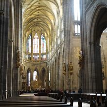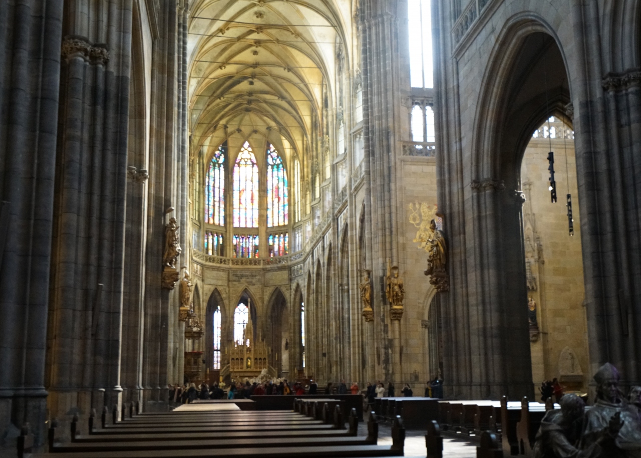 プラハ城内にある聖ヴィート大聖堂。1929年に完成したゴシック様式の聖堂です。美しいステンドグラスがあり、ミュシャによるステンドグラスがあることでも有名です。朝一で行ったにもかかわらず、人がとにかく多くゆっくり見ることができませんでした。