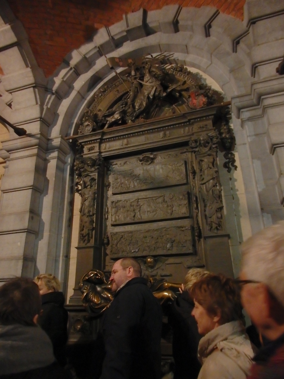 このセルクラースの像に触れると幸福になれるという言い伝えがあるため、常に触れようとする人々の手が伸びており、触られる辺りがピカピカになっています。