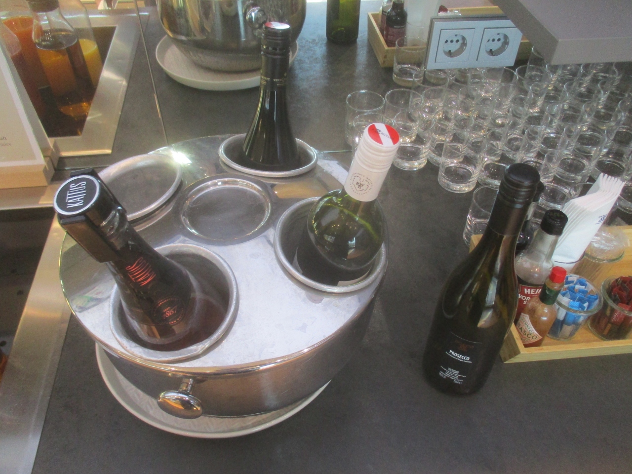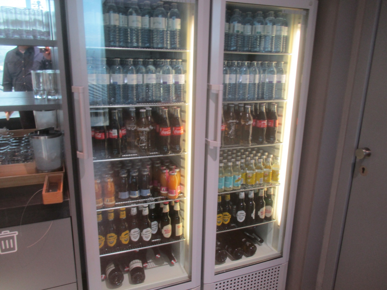 オーストリア航空ラウンジ ビジネスラウンジはアルコールが充実していました。スタッフがきれいに並べたボトルが置いてあり、冷蔵庫には瓶ビールも置いてありました。全種類制覇というわけにはいきませんでしたが、搭乗まで数種類のアルコールを飲みくつろぐことができました。
