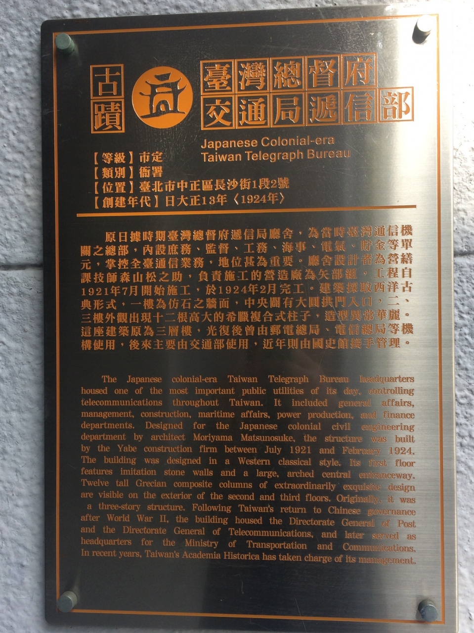 長沙街というあまり目立たない一車線のみの通りにあります。中華民国総統府の向かいで、同じようにレトロでおしゃれな郵便局が同じ通りにありました。入場料無料で見学でき、毎週日曜日は休館です。日本の首相からのお土産も飾られていました