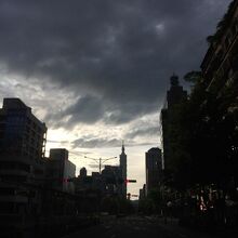 一方通行の通りです。真ん中に路線バス専用のレーンがありました。こちらの通りを少し徒歩で歩きましたが、車メインの大通りなので、ビルの1階にお店が入っているくらいで、雑多な感じはありませんでした。101が見えます