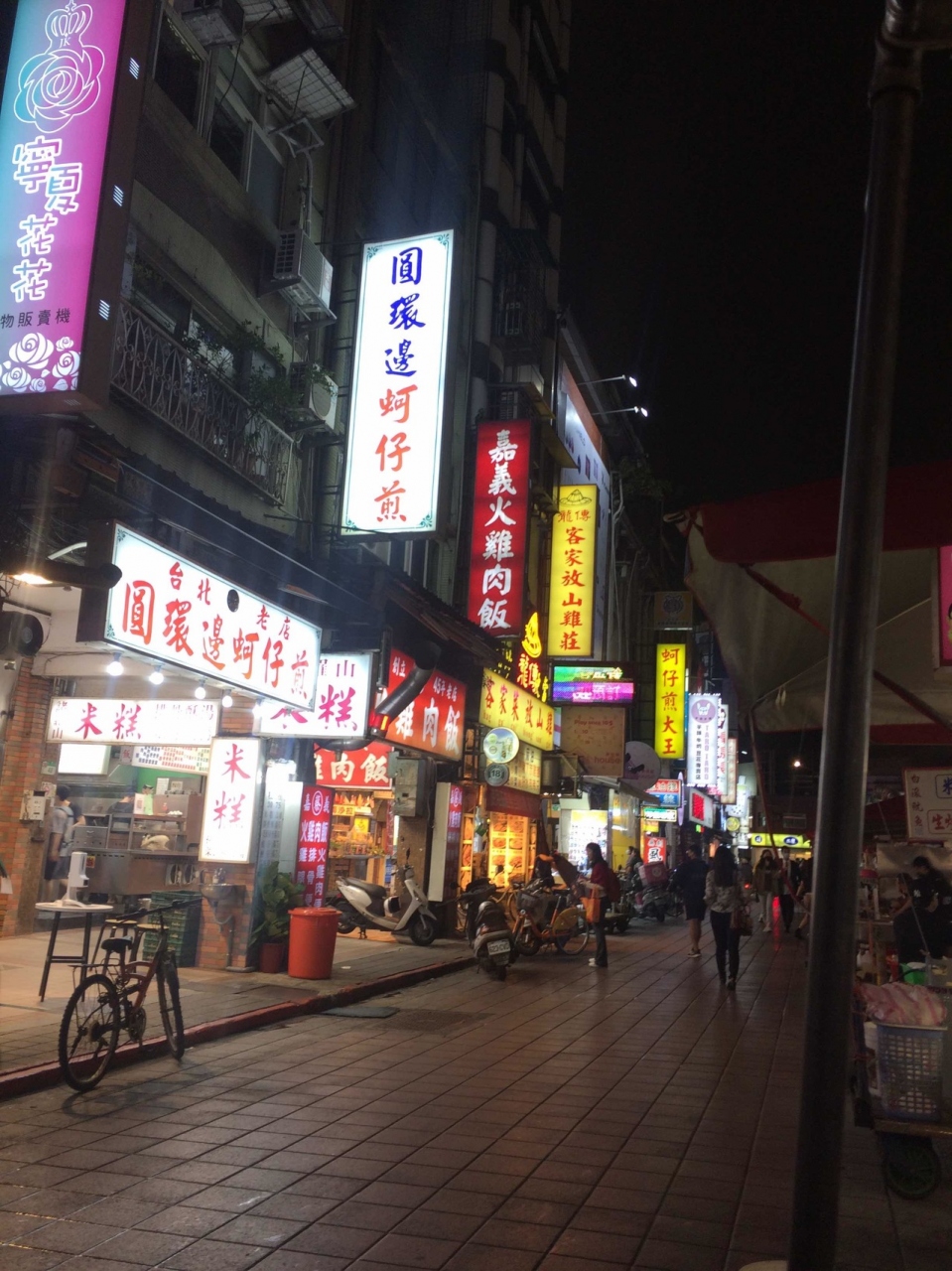 寧夏路夜市には、豆花とイモ団子(卵の黄身が中に入っていて、揚げてあるもの)というデザート狙いで行く事が多いです。鶏肉のささ身を割いたのがごはんにのっている屋台も好きです。学校が真ん中へんにあって、それが目印です