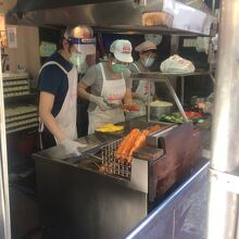 基隆の老街夜市にある1軒の屋台です。どちらかといえば駅側から夜市に入ったとして、お尻側にあるお店です。向かいには、シャーベットアイスの屋台が2軒並んでいました。ゆで卵にキュウリにマヨネーズと揚げパンが合います