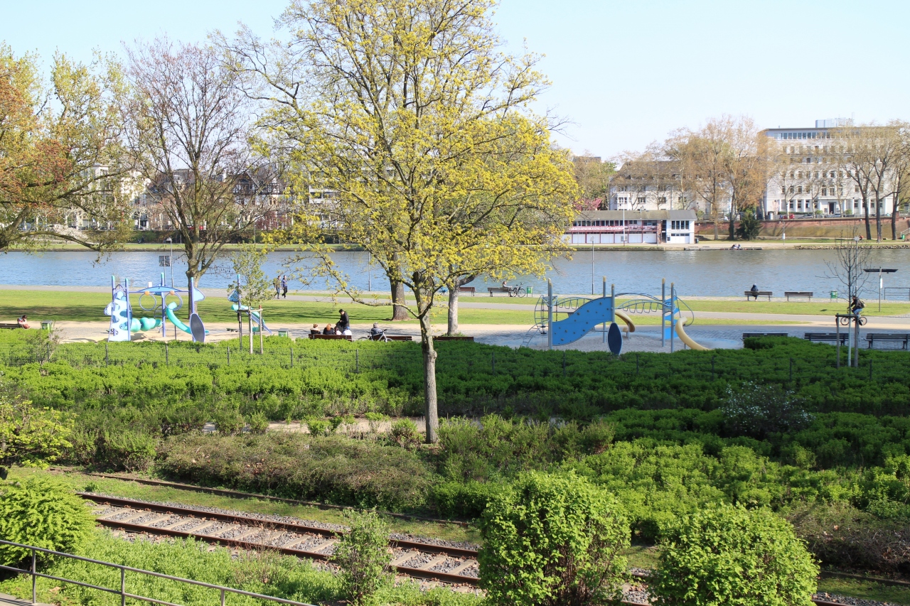マイン川と平行に車の通れる大きな通りもありますが、マインカイと言えば マイン川沿いの遊歩道