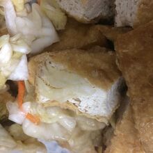 台北駅の近くにある新光三越の向かいにありました。大腸麺線と臭豆腐の2種類のメニューを扱っていて、大と小のサイズが選べます。臭豆腐にかかっているたれは、足りなかったら追加してもらえます。まあまあおいしかった。