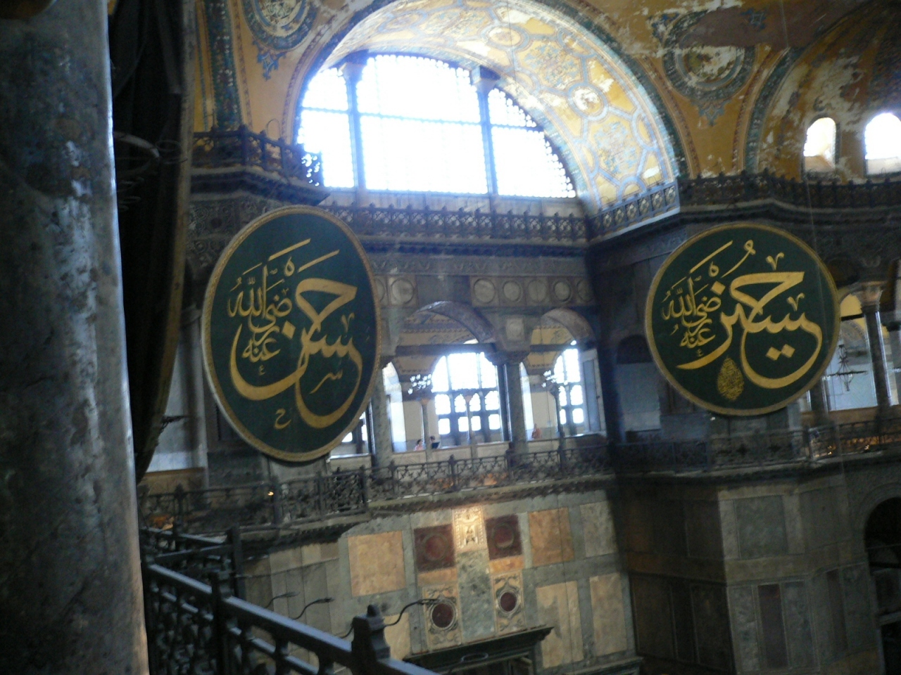 ビザンチン時代にキリスト教会堂として建てられ、オスマントルコ時代にはモスクになって、今日まで内外からの多くの観光客が訪れています。外観はあまりにも大きく、内聖堂は漆喰の下から金色のモザイクが描かれてイスラム文化の傑作です。