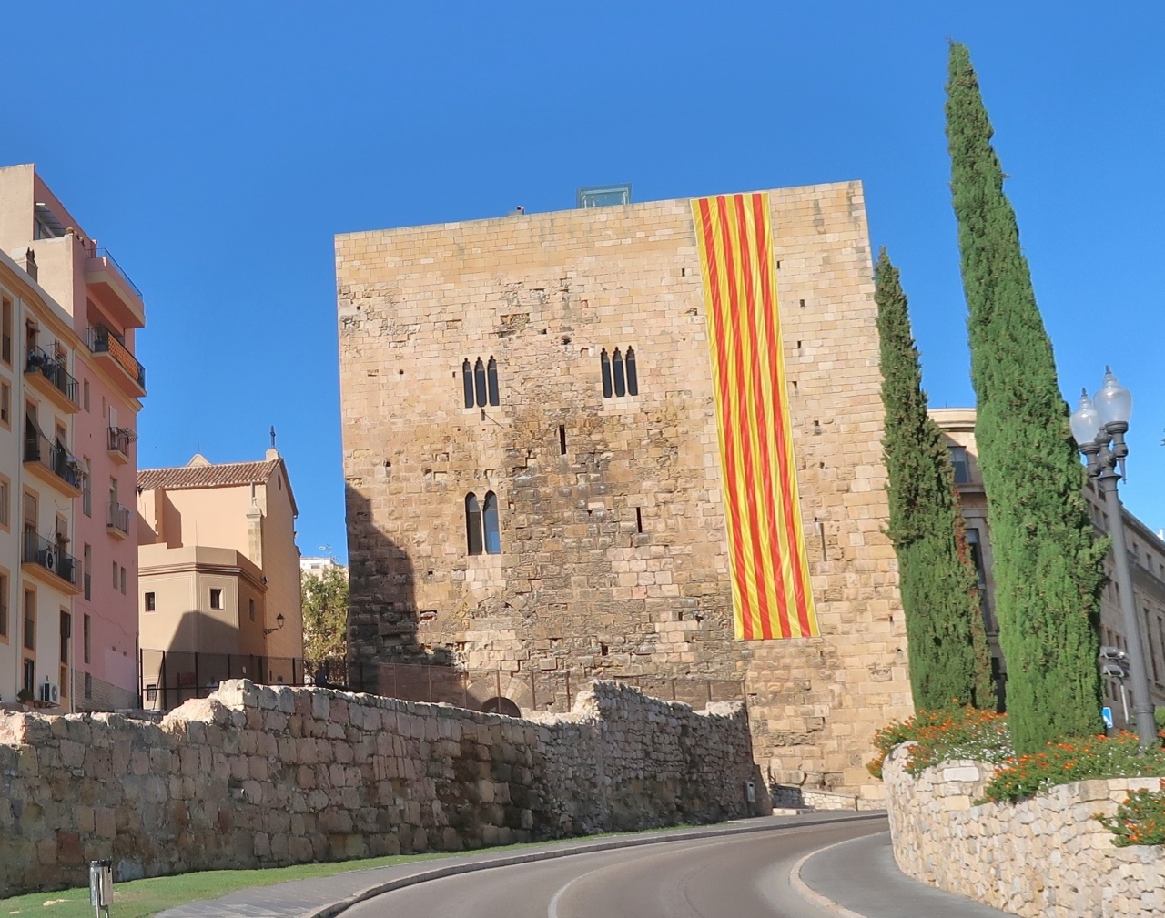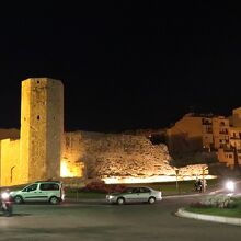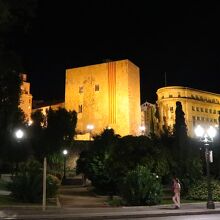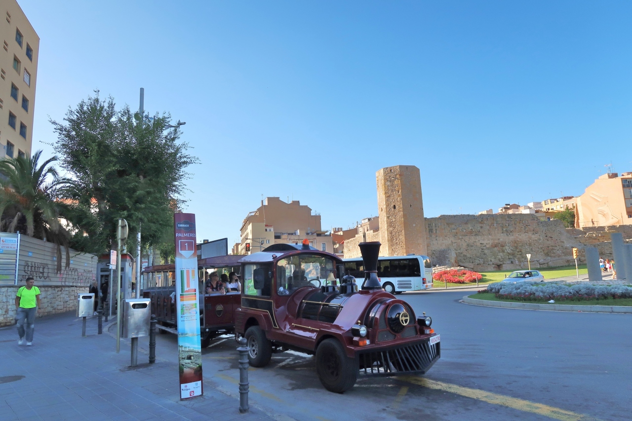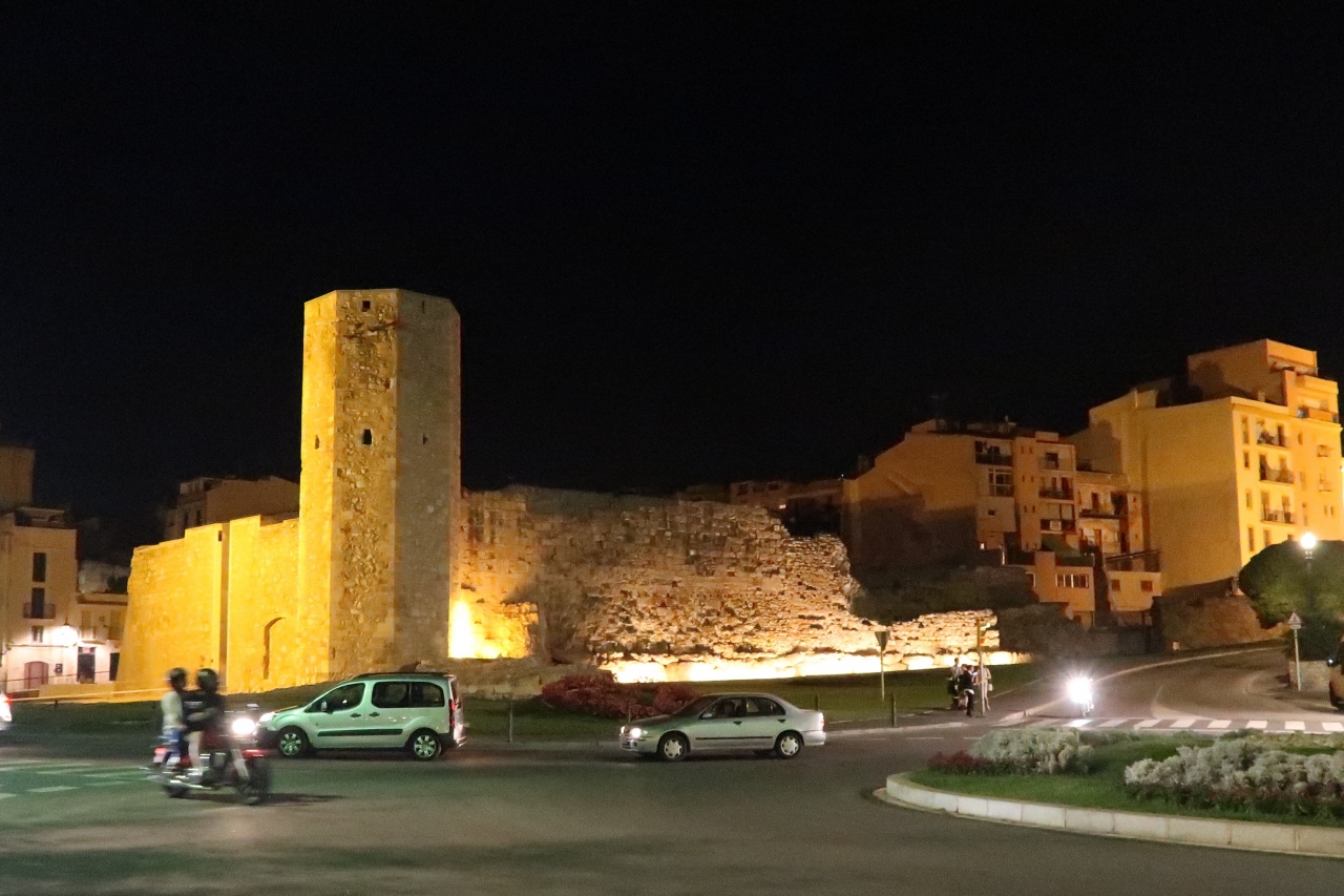 73年頃、ウェスパシアヌス帝の時代に建設された属州総督公邸として使われた建物プレトリと、1世紀末、ドミティアヌス帝の治世下に建設された戦車競技場の遺跡が、タラゴナ旧市街の入口にあたる高台に残されていました。この近くのホテルに宿泊していたので、夜に通りかかると、モンジェス塔と城壁、プレトリとその隣の考古学博物館まで、オレンジ色にライトアップされていました。モンジェス塔の前のロータリーの向こうに、観光用ミニトレインの乗り場もありました。