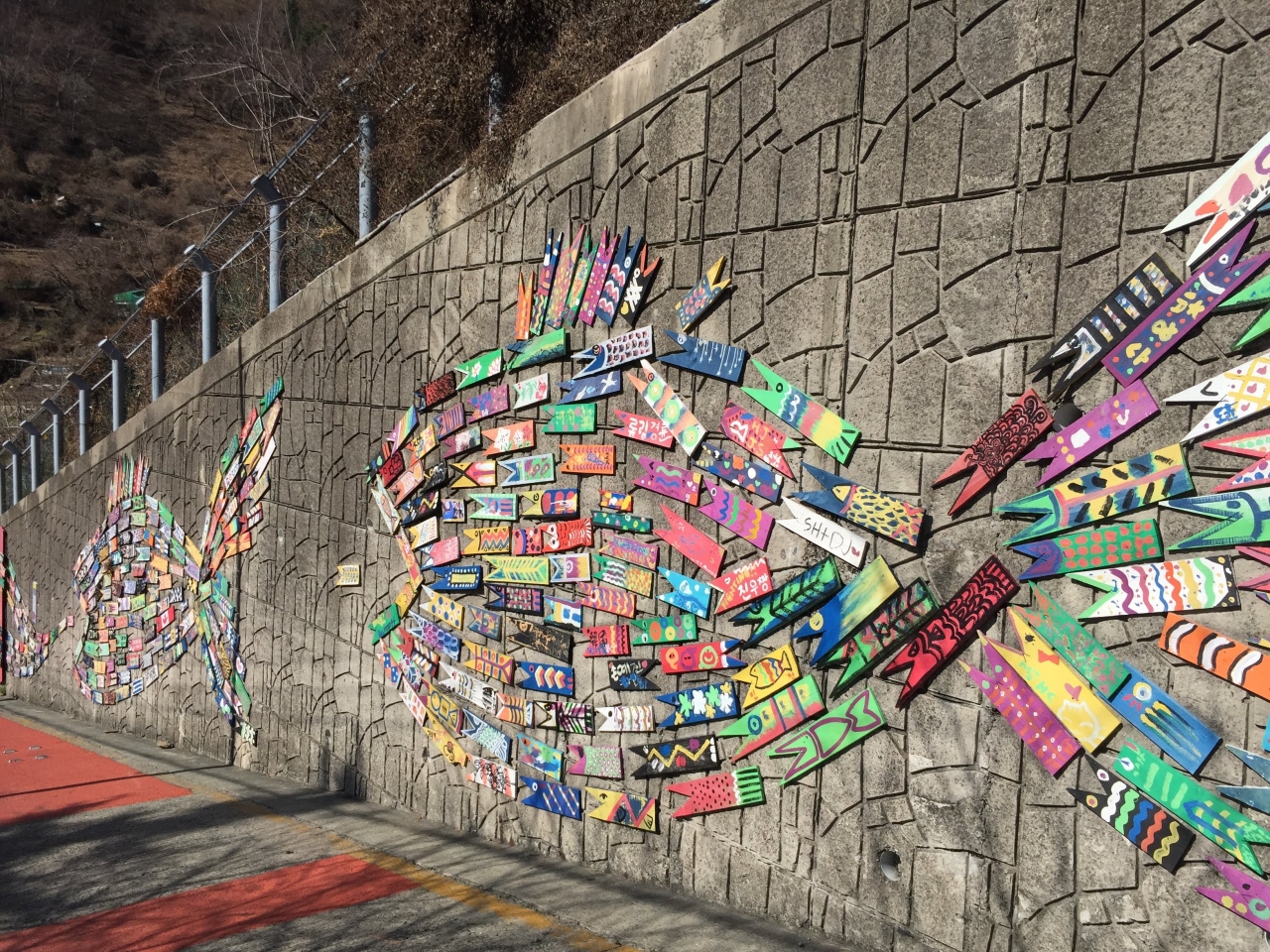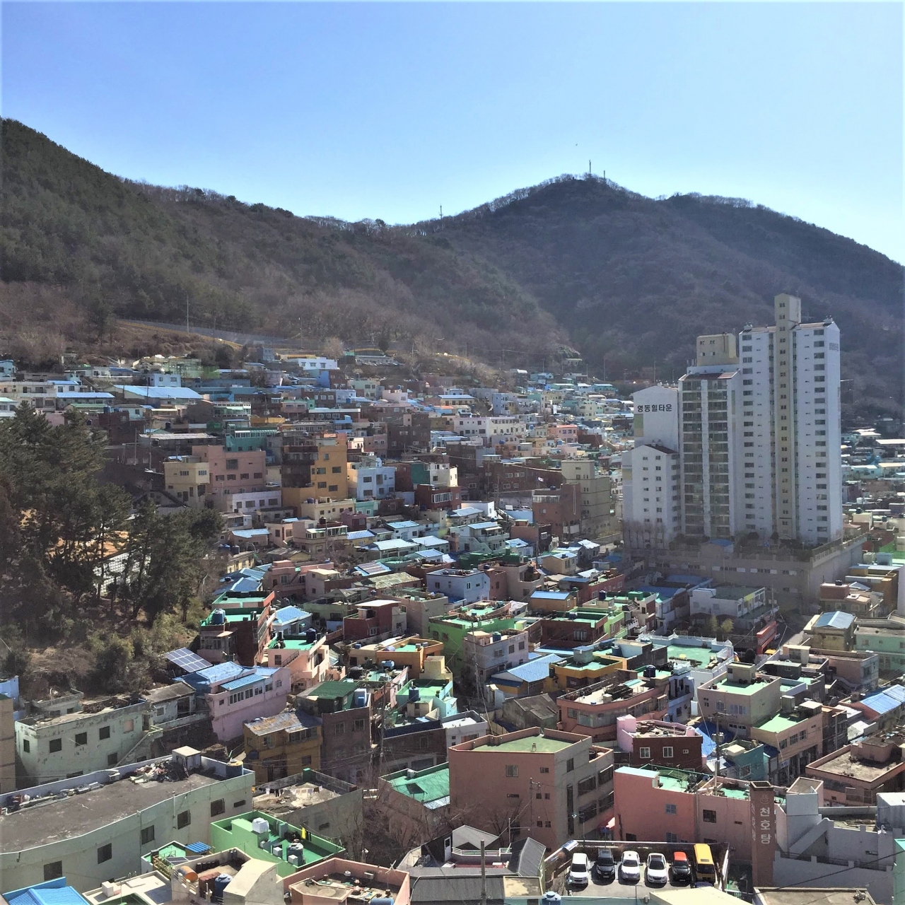 甘川洞文化村は坂や階段が多いところです。韓国のマチュピチュと言われているらしく、山の斜面に建物がへばりつくようなイメージです。