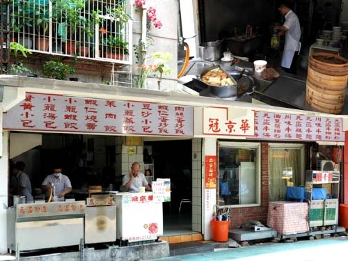 店の向かって左手に、間口全体の約半分の厨房があり、そこでいろいろ調理して、持ち帰り客にも対応している。