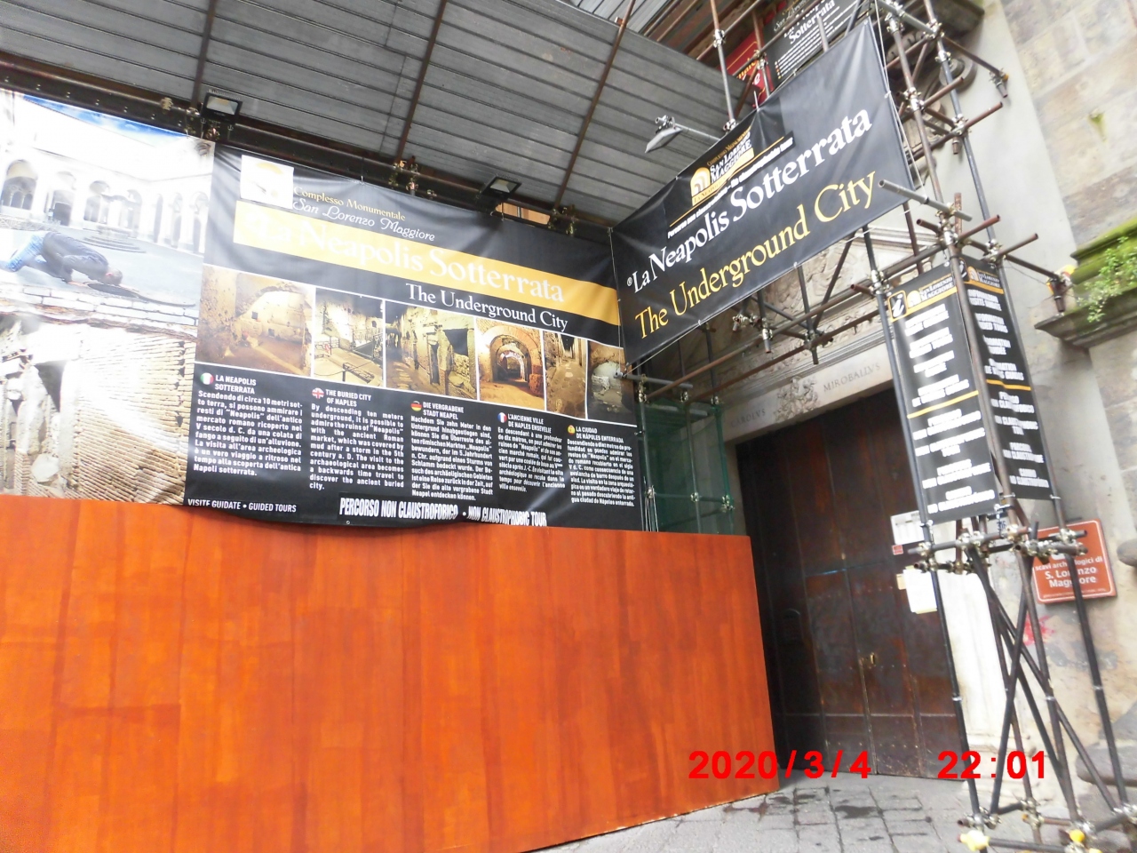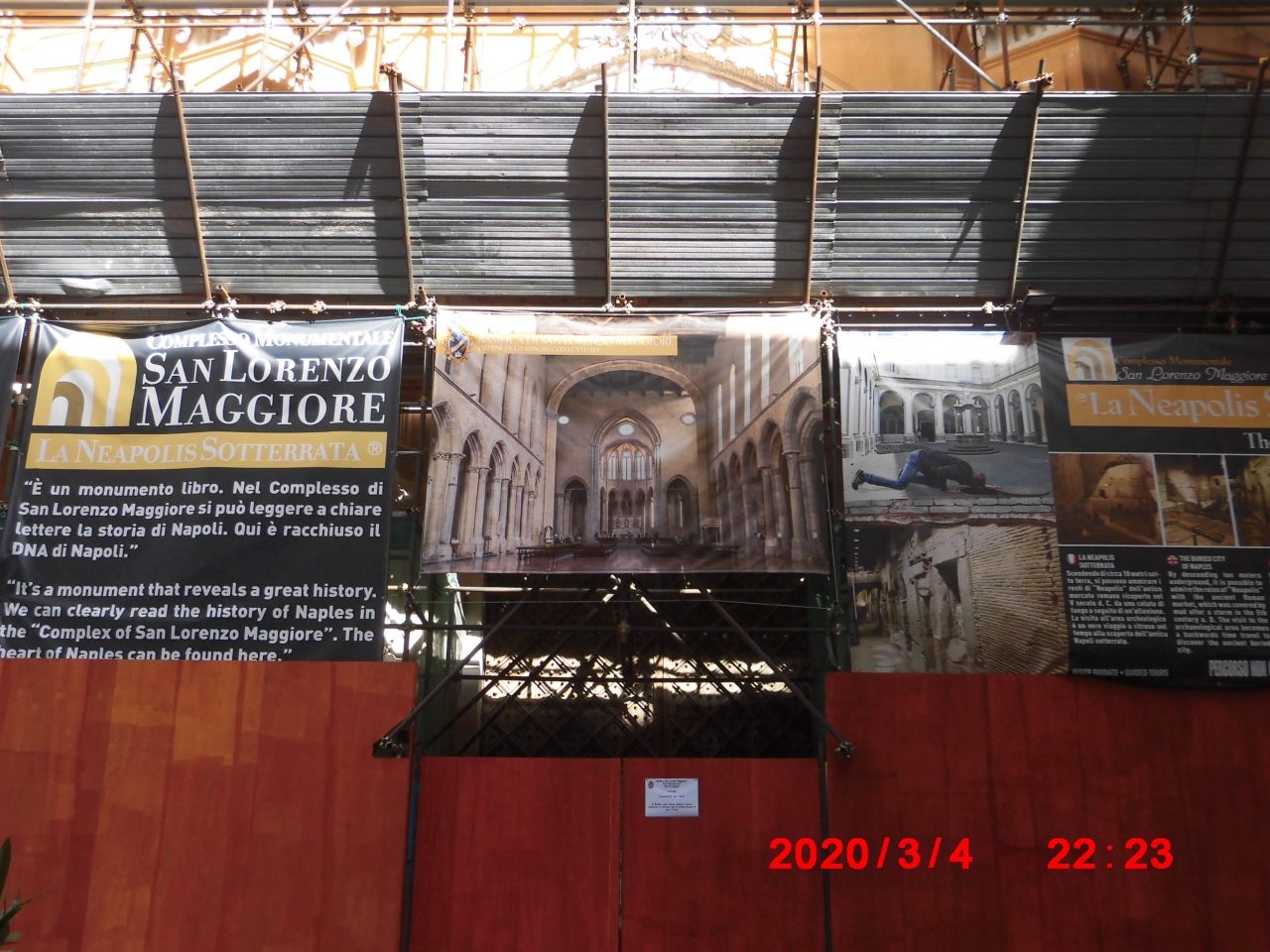 イタリアのナポリ観光で立ち寄りました。冬場は観光客が少なめで良いのですが改装作業に入る施設が多いのが難点でした。ジロラミーニ教会に続きサン ロレンツォ マッジョーレ教会も改修中で入り口が閉ざされてました。場所はジロラミーニ教会からトリブナリ通りを数分進んだサン・ガエタノ広場の所です。このあたりの露天商は通りに布を広げただけのちょっと怪しげな人たちが多くちょっと怖かったです。