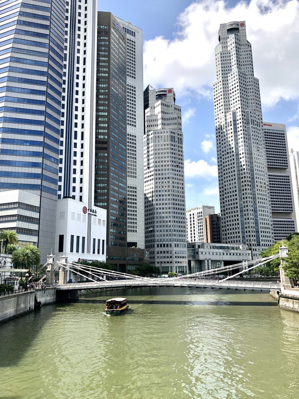 ビル群の真下にあたるフラトンホテルに泊まっていたため見えにくい位置でしたが、リバークルーズなら全景を見ることができるので強くオススメします。
