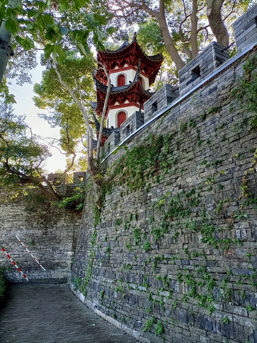 上海地下鉄2号線の【川沙駅】から徒歩でも行ける古鎮です。歩くのがしんどいという方は、【川沙駅】からバス24路で3駅の【新川路川黄路】下車となります。水郷の村とうよりも、民国から新中国建国初期の街並みをそぞろ歩くのが楽しい街です。1956年に建てられたコンクリートの商店には、2階壁面に共産党の星がはめ込まれていて、建国間もない時代の雰囲気を感じることができました。また、明の時代に倭寇に対する防御のために築かれた城壁も、一部ですが残っていて上に上がれるようになっていました。