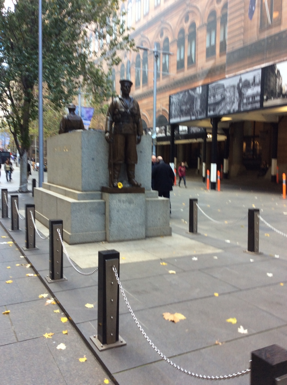 広場中央にはANZAC戦争追悼慰霊碑が有ります。