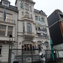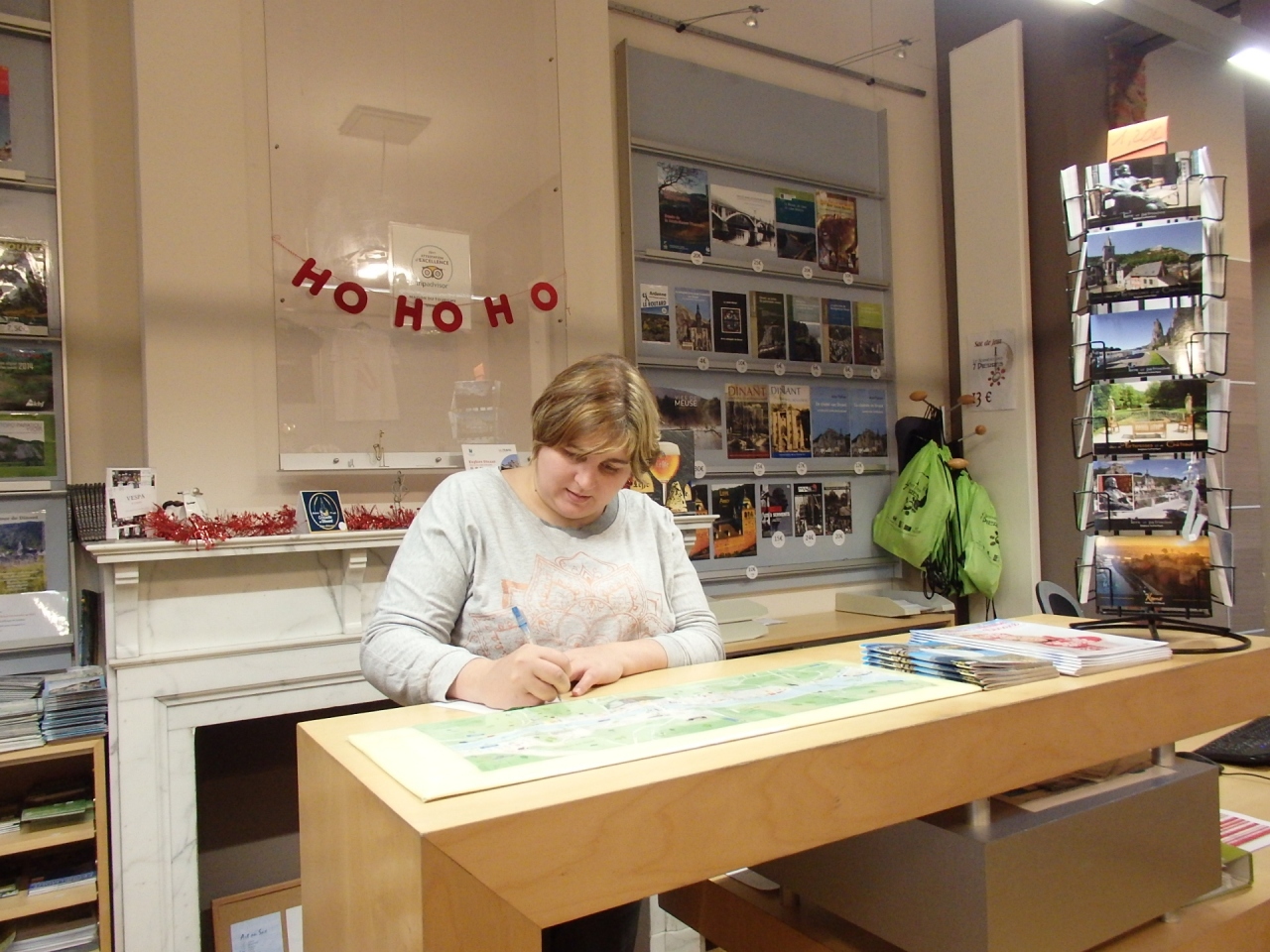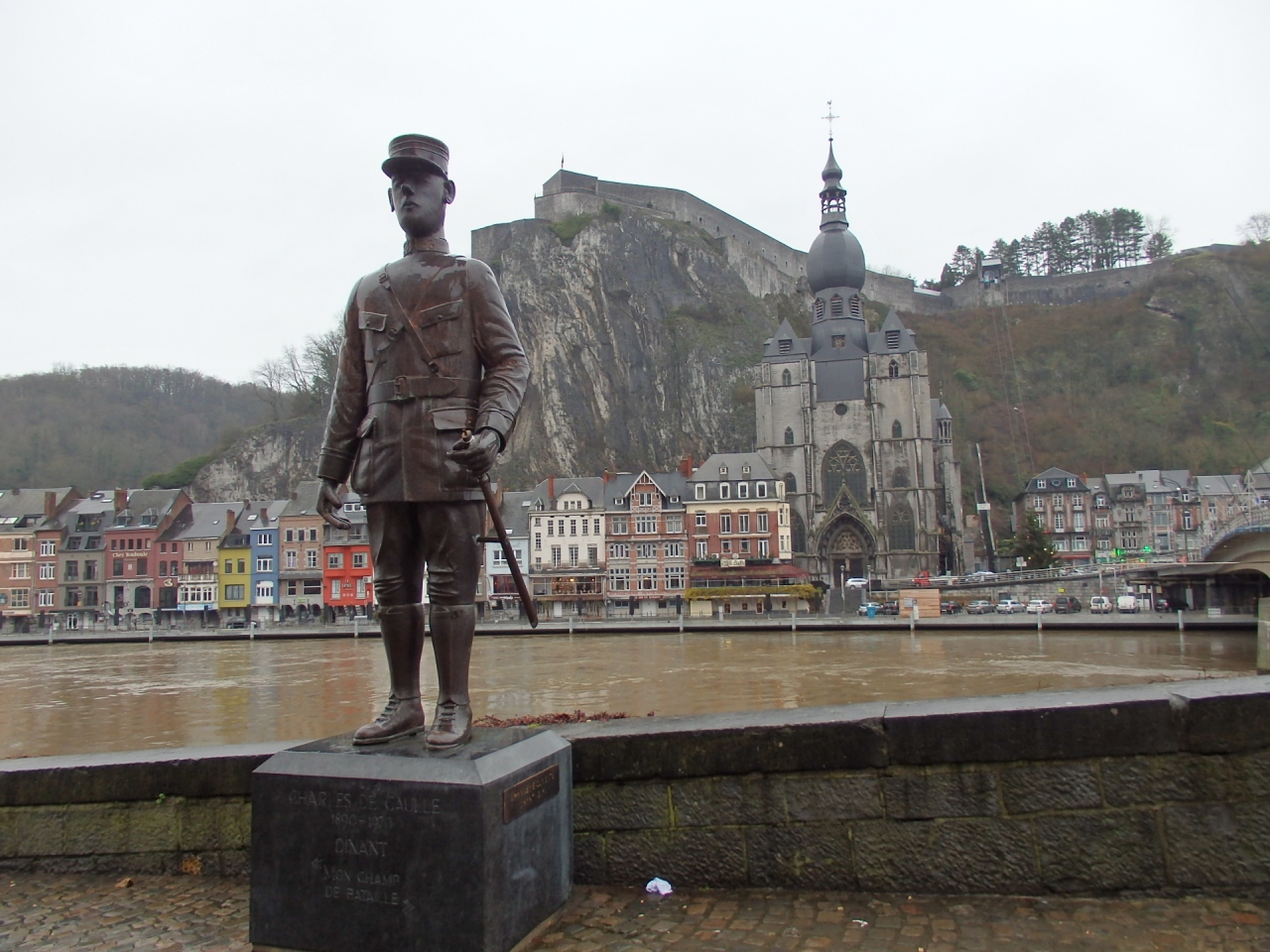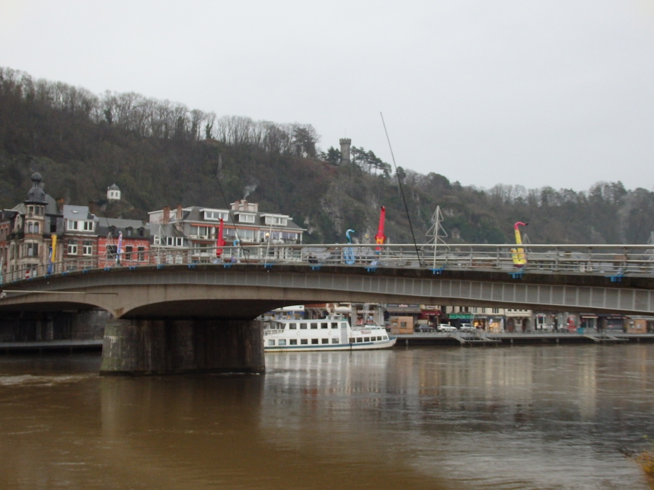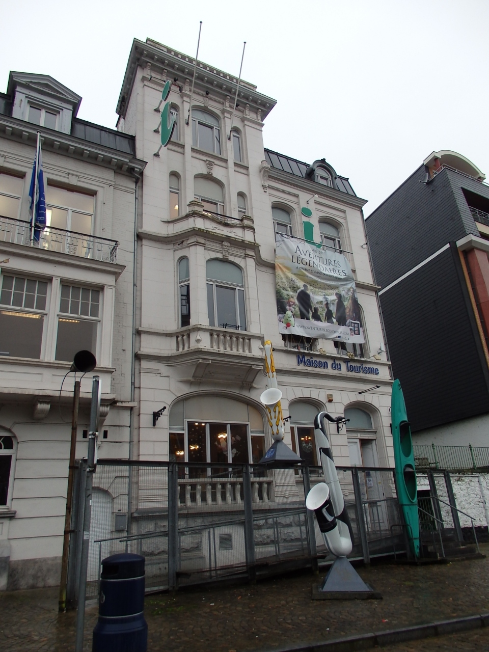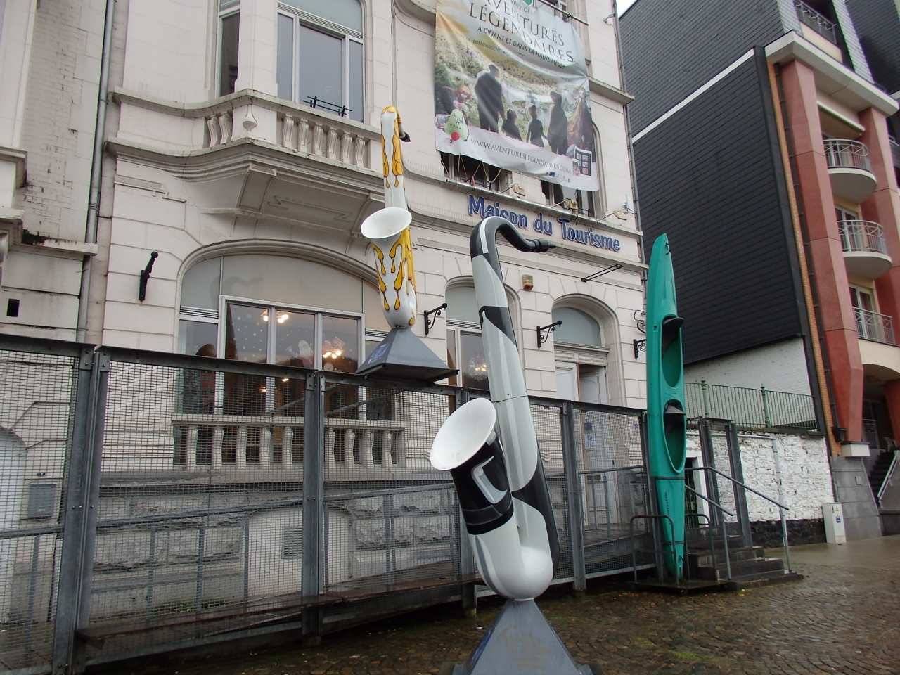 ディナン駅からムーズ川に架かるシャルル・ド・ゴール橋の手前を左手へ曲がったところにある建物内に入っています。案内所前には大きなサックスのオブジェがあって目印になります。町の地図をもらうと、お薦め観光ルートも教えていただけます。観光所前からは川向うに断崖絶壁の上にあるシタデルや玉ねぎ頭のノートルダム教会、川沿いに建つ童話の世界のような民家などが絵のように美しい風景が楽しめます。