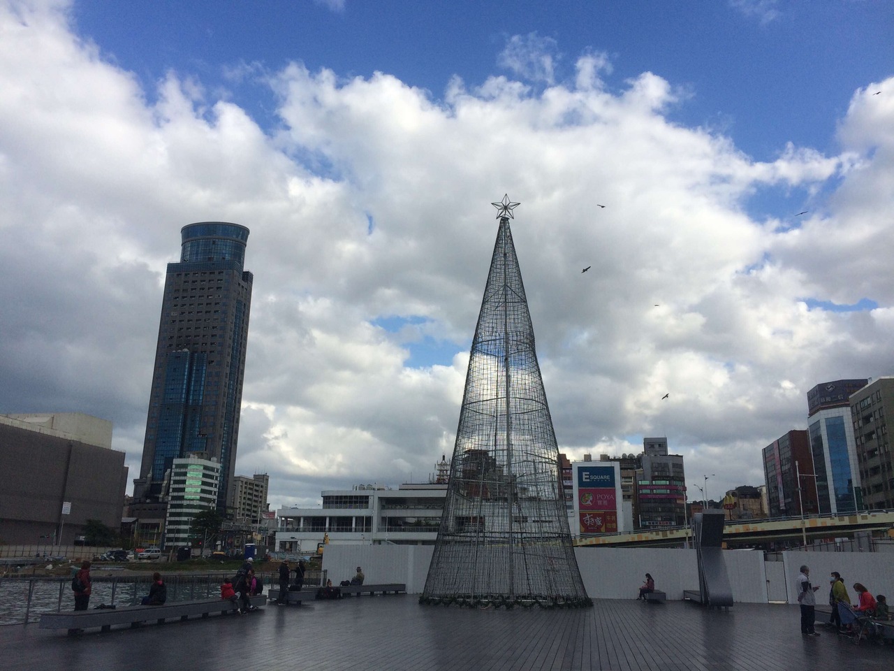 基隆海洋廣場は基隆駅から信号を渡ってすぐのところにある海が見える広場です。小型犬や大型犬を連れて散歩に来ている地元の人たちが多かったです。ベンチのようになっているモニュメントがあるので、そこで座って風にふかれます