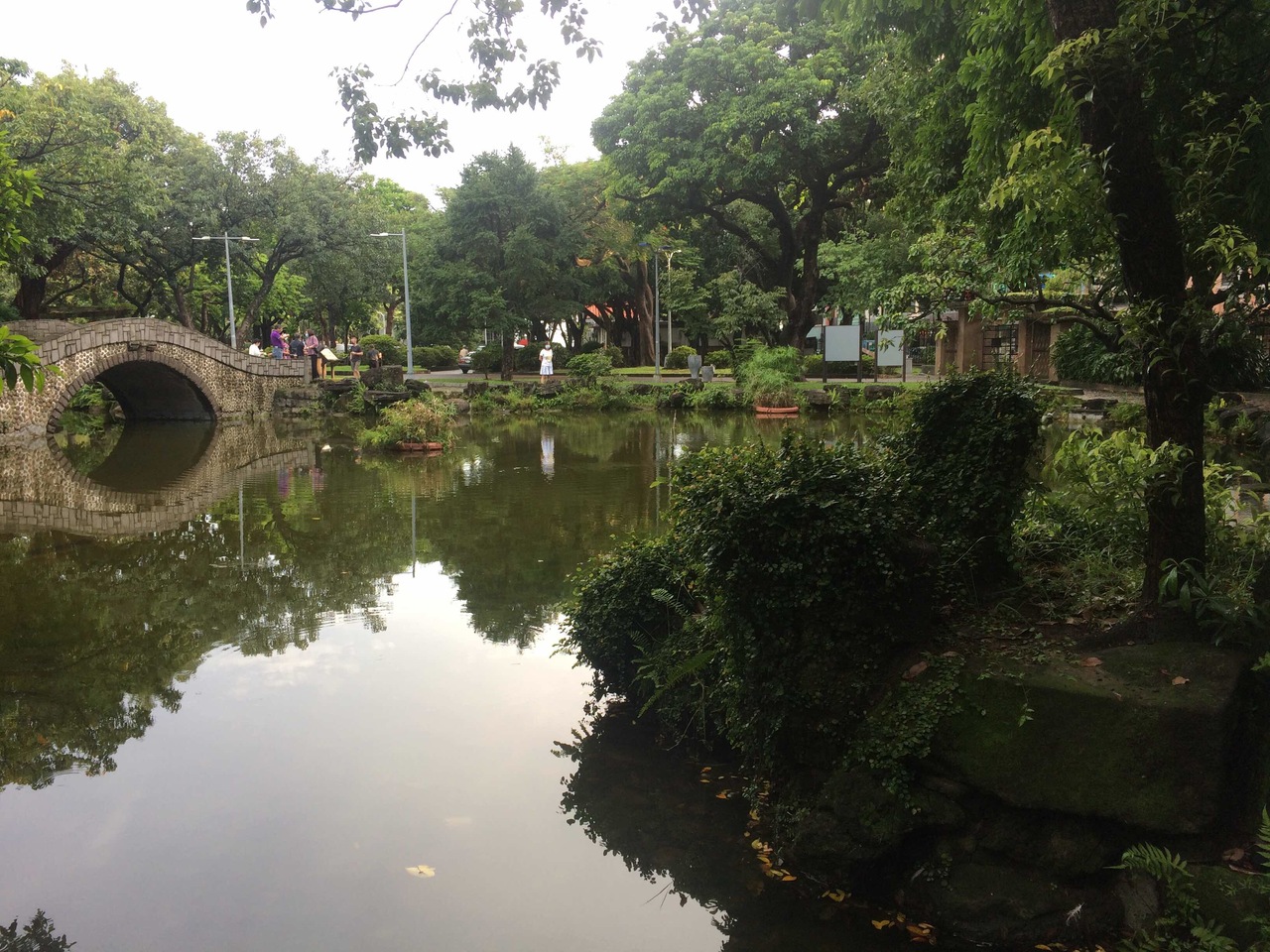 石の橋、石垣には苔が生えて風情のある公園内にある池でした。学生が美術の授業で?スケッチしているのも納得でした。池側にある出口から出ると、セブンイレブンなどコンビニや食事やさんやお店など必要なものはそろっていました。
