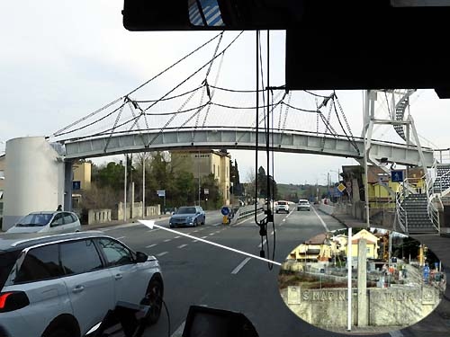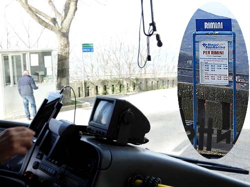サンマリノ共和国への唯一の公共交通機関で、イタリア、リミニ駅正面を出て線路に並行する道路を少し右に行ったところから出ている。