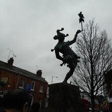 シェイクスピァの戯曲に出てくる道化師の像が通りの真ん中に在りました。観光客にわかり易いので、ここが集合場所に指定されました。シェイクスピァの生家にも近く、お土産ショツプの出店が道の両脇に在るので、散策しながら見ました。