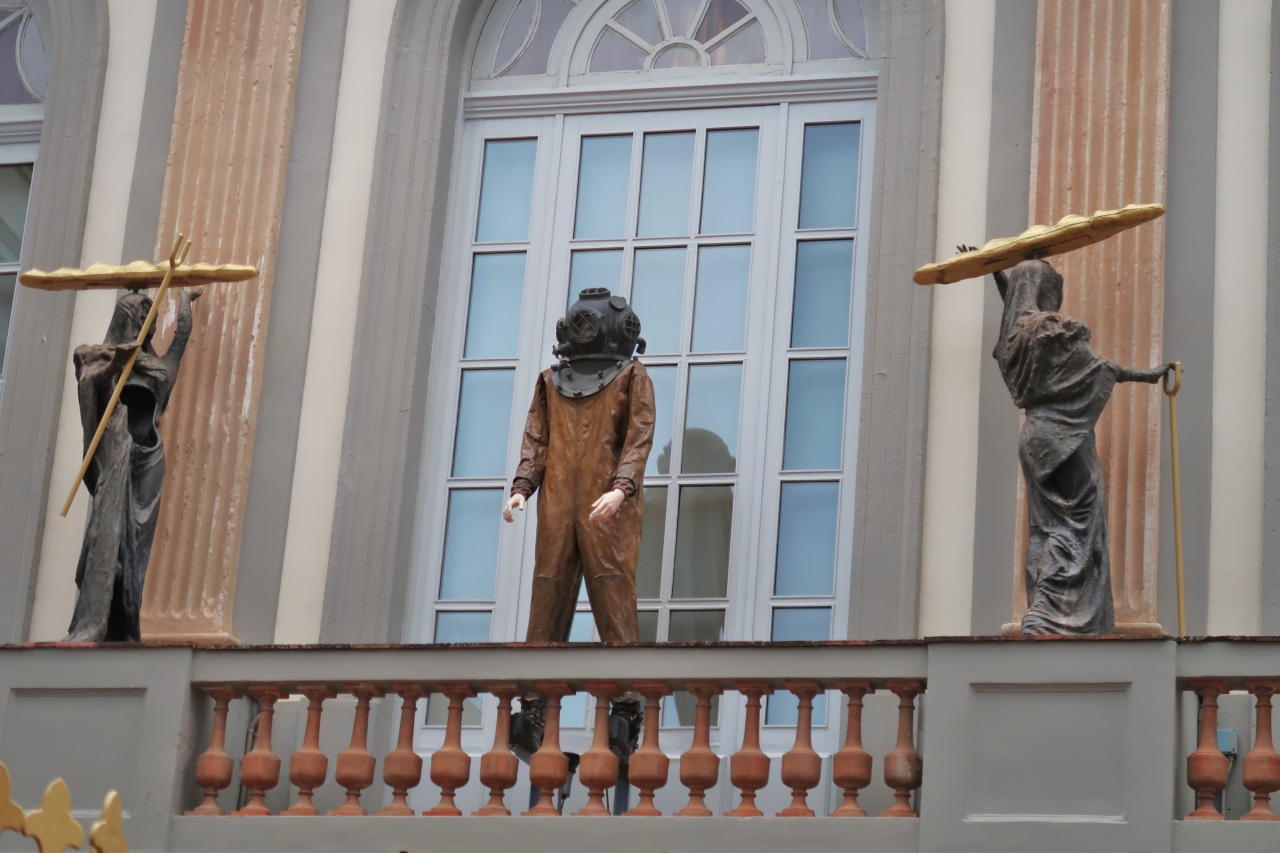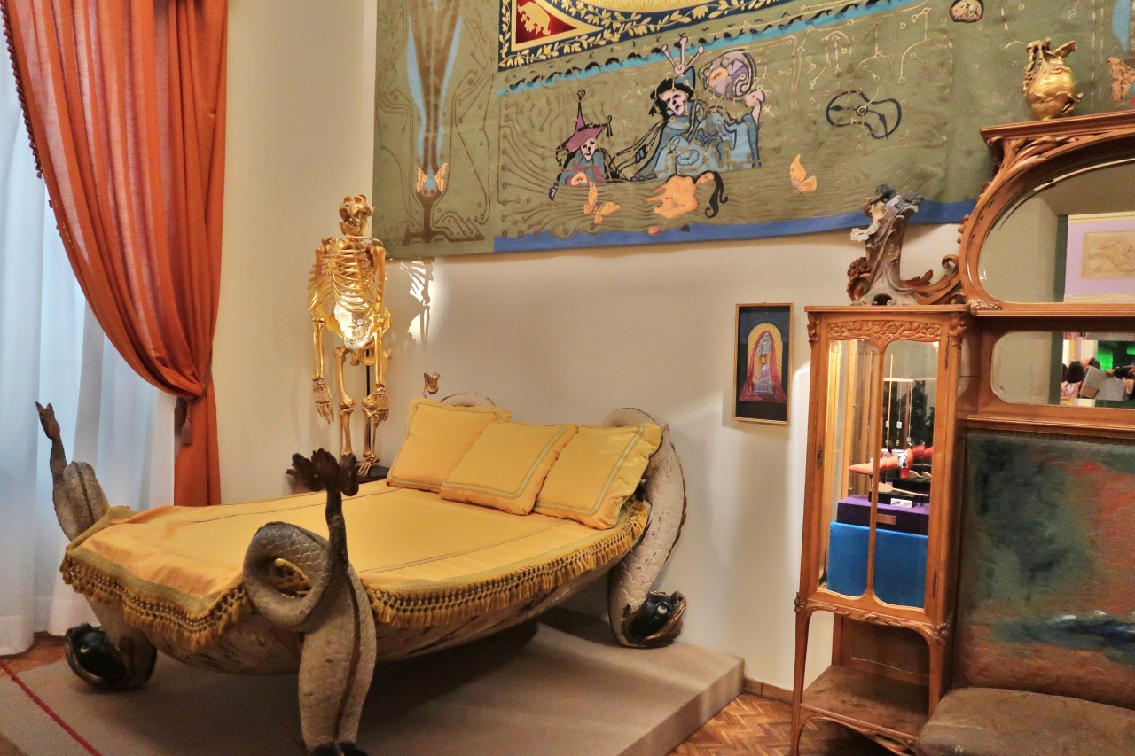 フィゲラス市営の劇場を、10年かけて自分自身の美術館に改修したもので、かつての劇場正面入口のバルコニーの上で、潜水服姿のダリが出迎えてくれました。ガラへのオマージュとして建てられた卵が並んだガラテアの塔で晩年を過ごしたダリは、ガラスの球体ドームの真下、リンカーンのだまし絵がある部屋の赤い床の一部が灰色になっている墓石の下で永眠しています。