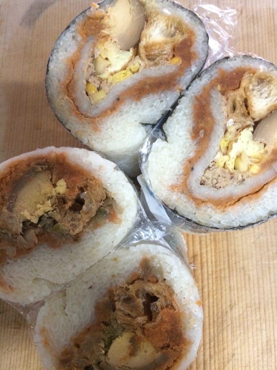 なんだかぼそぼそしている肉そんというものが入っていて、ふりかけだと言われたんですが、それが意外と合いました。癖になる味です。紫米のおにぎりが劉媽媽飯團の看板メニューなので、それを基本的にリピートしてみました。
