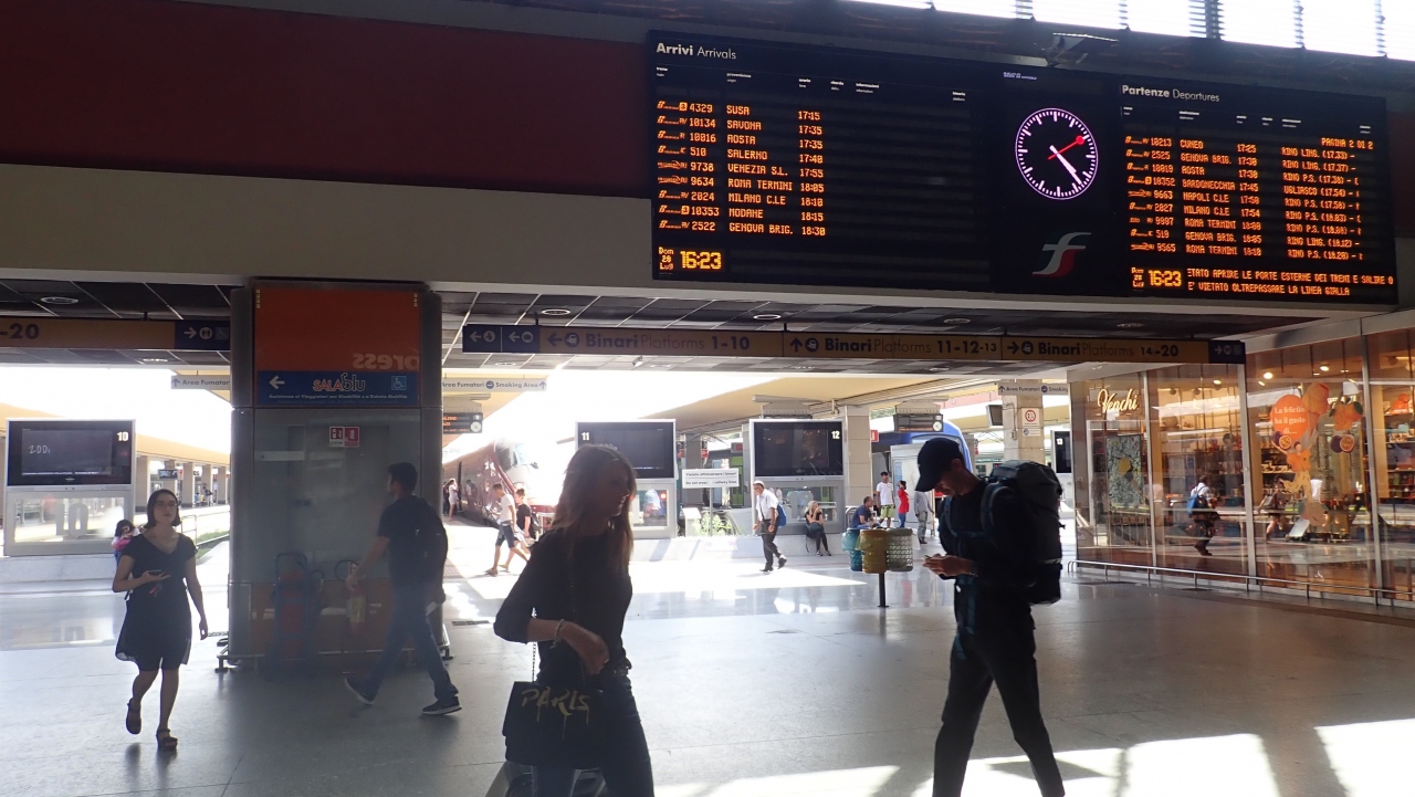 ローマテルミニ駅とミラノ中央駅に次ぐ、イタリアで3番目に混雑する駅らしく便利で活気ある駅です。フランスやスイスからの国際列車の起点でもあるので華やかな雰囲気も。