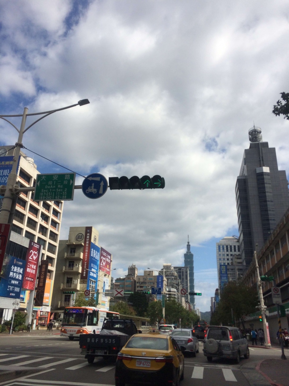 大安駅には、出口が結構あり、5番出口と4番出口が比較的込んでいました。エスカレーターも広くて、とても使いやすい場所でした。大安路という駅と同じ名前の通りがありました。バスレーンは、バイクや車と別のレーンでした