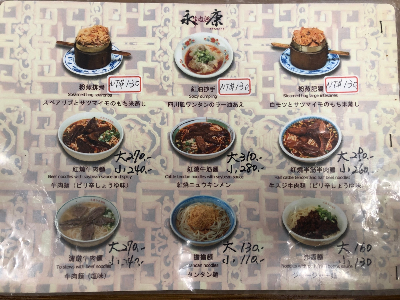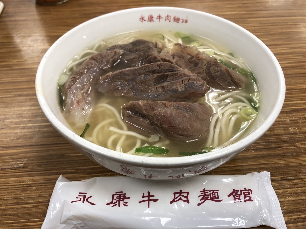 概ねランチの時間帯に訪問しました。一度行ったんですがあまりの行列の長さに断念して時間帯をずらしてリベンジしました。それでも行列が凄いです。結局1時間弱行列に並んで入店しました。アクセスはMRTの東門站から徒歩3分程です。東門站はMRTが2路線利用可能で、駅周辺は飲食店が乱立してる繁華街なので鼎泰豐の本店など他のグルメスポットとハシゴもできます。店内は混み合い普通に相席になります。メニューは日本語表記もあり安心して注文出来ます。八角臭がやや強いとのブログの記事があり、八角が苦手な私は塩ベースの牛肉麺を注文しました。特筆すべきは牛肉自体で日本のラーメンのチャーシューとは違いガチの肉の塊という大きさの肉がいくつも入っています。申し訳程度になんちゃってで入ってる感じではないので、かなり食べ応えがあります。人気店ですので台湾に行かれた方は是非一度試して見てください。