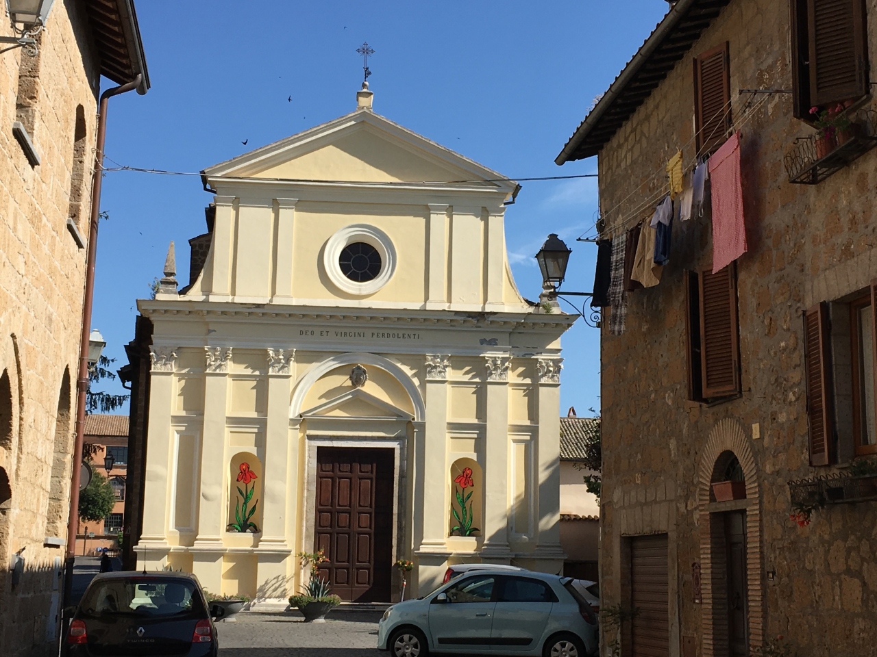 宿から東の市立公園へ目抜きのカヴール通りを行きましたが、脇道の奥まったところにキレイなクリーム色の小さな教会がありました。新しい感じであまり歴史はなさそうでしたが、現役で地元に使われて親しまれている感じがしました。