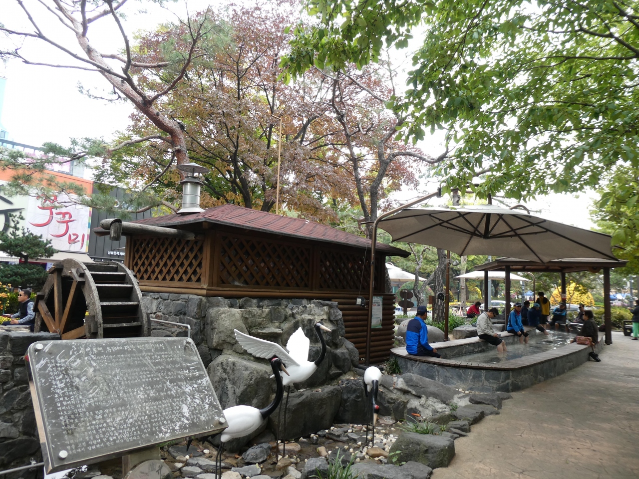 今回はこの温泉街に宿泊して翌日儒城温泉街の中央に有る公園内の足湯で朝からのんびりしてきました。