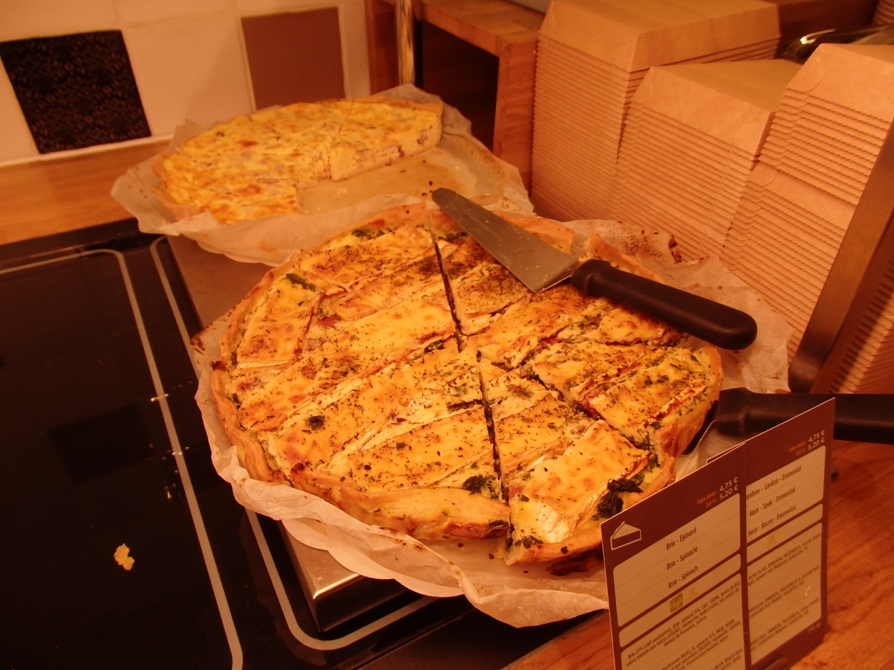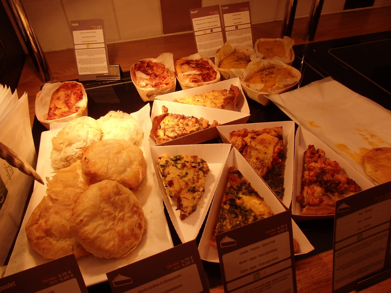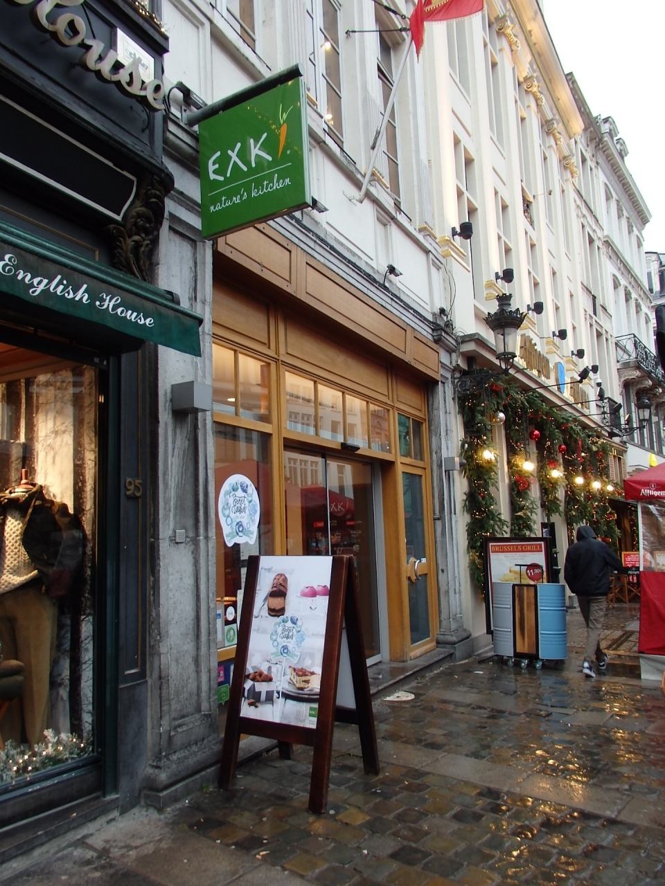 グラン・プラスの北東徒歩数分のところにあるアゴラ広場に面したエクスキはセルフサービスのファーストフード・レストラン。自然派志向で人気があり、多種類のサラダやパイ、サンドイッチ、ホットメニュー、ジュース類、スープ類など豊富なメニューで手軽にイートインorテイクアウトのできる一人旅にはお助けマン的存在です。気軽に入れてにこやかな店員さんがいて、選ぶのが楽しくなるところでした。