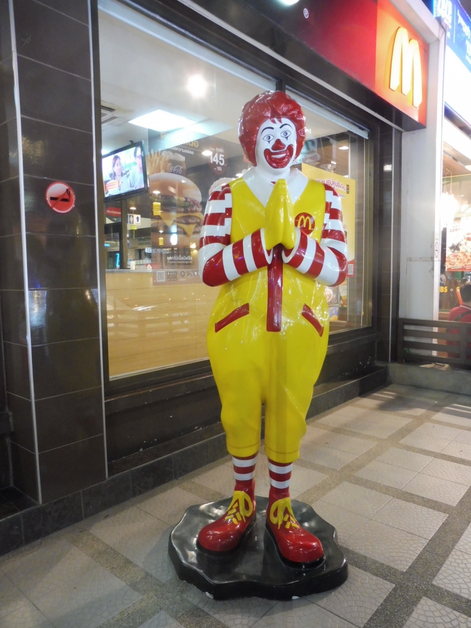 起点にはマックがあって、ドナルドがタイ式に手を合わせていました。