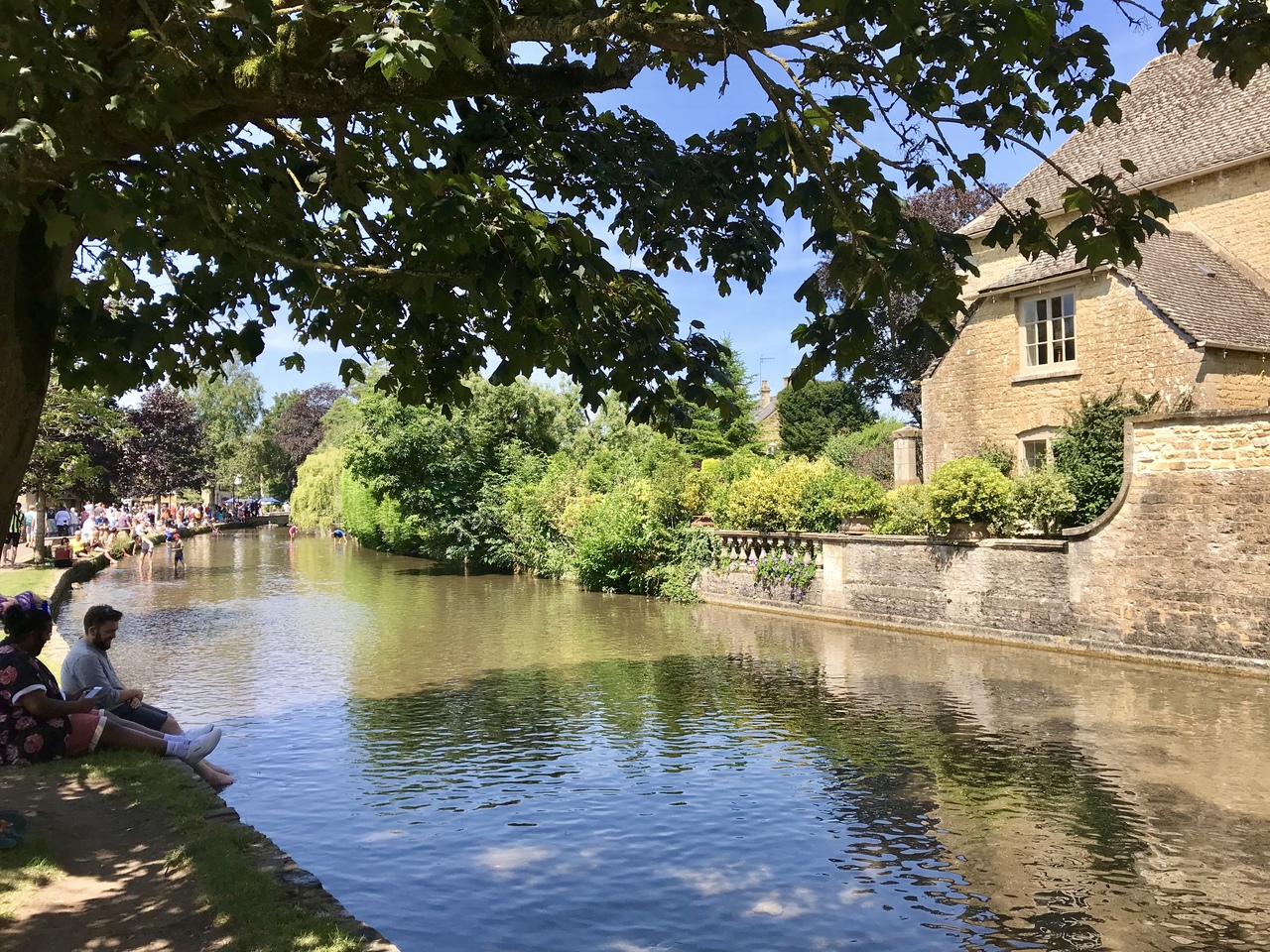 木陰と静かに流れる川の風景はとても心癒されます。コッツウォルズで採れる石で造られたという周囲の住宅の壁の色合いも素晴らしいです。夏は大人も子供も川に入って涼んだり遊んだりしていて平和な光景です。また飲食店もいくつかあり、食事休憩にも便利な所です。