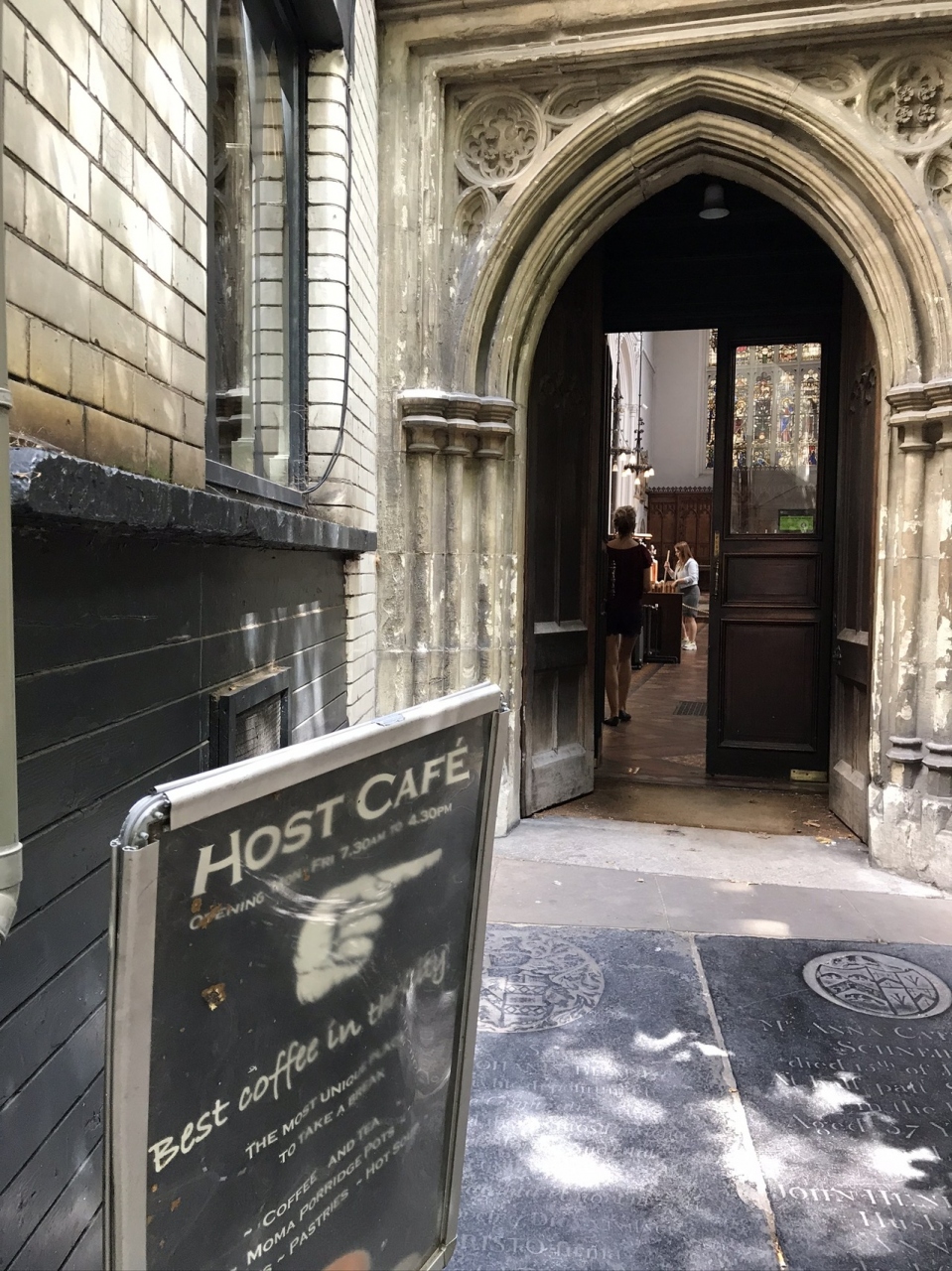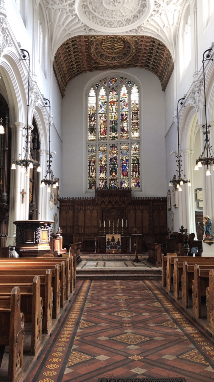 本物の教会の中にあるカフェ。街の喧騒を離れて穏やかで清らかな雰囲気の中カフェメニューを楽しめます。デカフェのアイスラテとキャロットケーキをいただいたのですが、教会を見るのが好きなので、その中でケーキを食べられるなんて最高の休憩でした。ハリポタロケ地のレドンホールマーケットにも徒歩10分ほどで行けます。